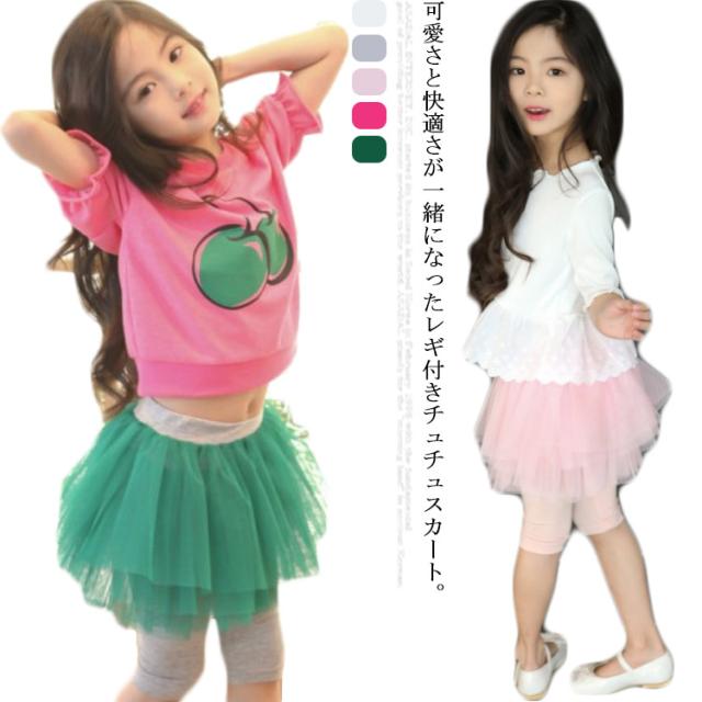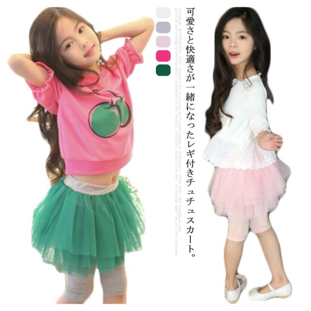 レギ付きチュールスカート 子供服 子ども服 チュールスカート チュチュスカート レギンス付き 五分丈レギンス スパッツ ボトムス スカート 女の子 キッズ 春 夏 100 110 120 130 140 送料無料