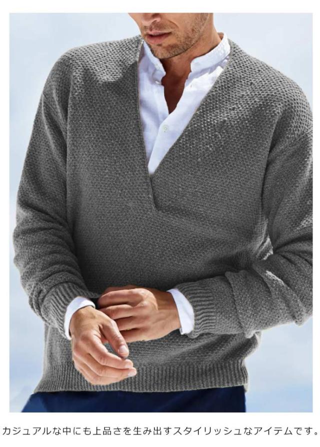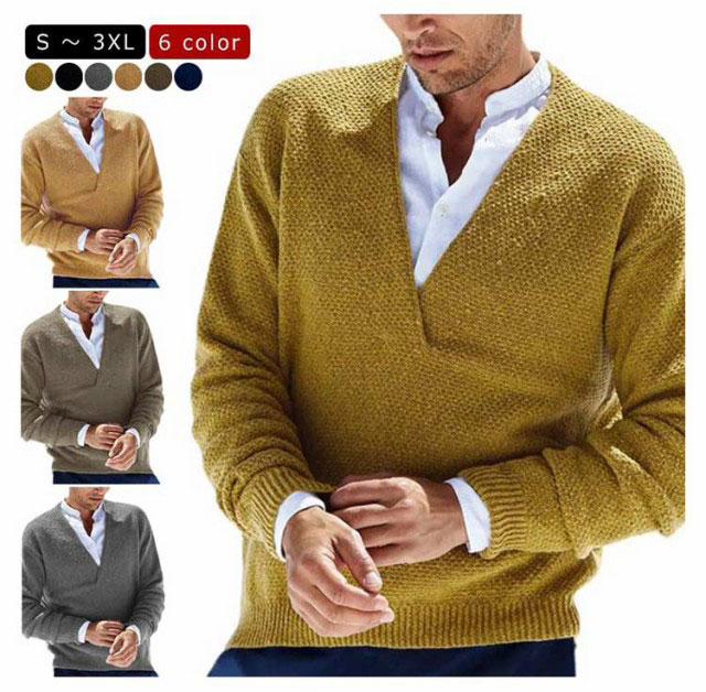 ニット メンズ Vネック 秋 冬 無地 長袖 セーター イエロー キャメル グレー ネイビー ブラック ブラウン ストレッチ 春 ニット ニットソー 長袖 ニット セーター 春 秋 メンズ 秋服 春服 おしゃれ キレイ目