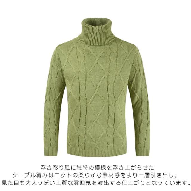 ケーブルニット ニット メンズ セーター リブ タートルネック コットンニット ソリッド ハイネック ケーブルニット ケーブル編み 無地 ミドルゲージ ニットセーター ボリュームネック Mens ニット タートルネック