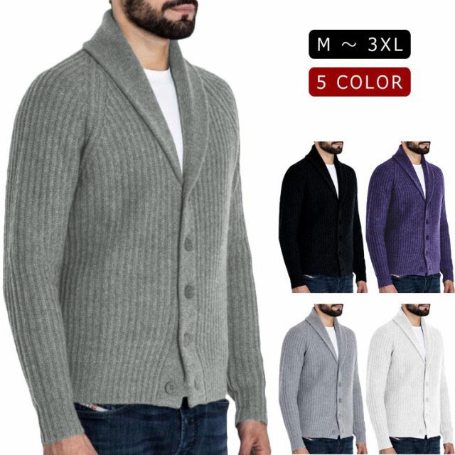 カーディガン メンズ ニット ニットカーディガン ショールカラー 無地 リブ ニット カーディガン 長袖 セーター メンズ ケーブルニット ニットジャケット アウター 秋冬 春物 春服 ホワイト ライトグレー ブルー ブラック ダークグレー