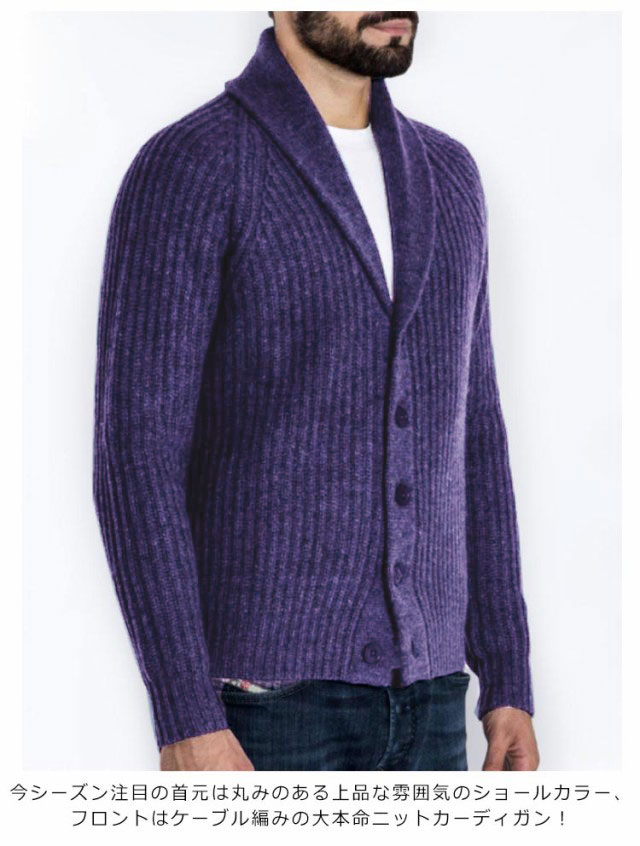 | ニット セーター カーディガン 今シーズン注目の首元は丸みのある上品な雰囲気のショールカラー、フロントはケーブル編みの大本命ニットカーディガン! ボタンにはバスケットボール釦を使用でアクセント!特殊編み立て機を使用した着心地もバツグン! 秋はトップスとして、冬にもインに重宝すること間違いないアイテムです!! 数にも限りが御座いますのでぜひこの機会に! | |