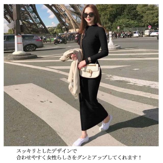 | 上品な印象に与えるロング丈ニットワンピース。 程よくボディラインにフィットするデザインでフェミニンに仕上げました。 スッキリとしたデザインで合わせやすく女性らしさをグンとアップしてくれます! 身体に沿ったデザインでより美しいシルエットに魅せてくれるので嬉しい! | |