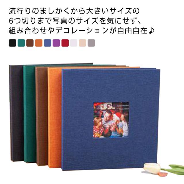 フリーアルバム フリー台紙 アルバム フレームアルバム 麻 粘着台紙 手作り 大容量 フォトアルバム ましかく L判 エコー写真 卒園アルバム 卒業アルバム 出産祝い