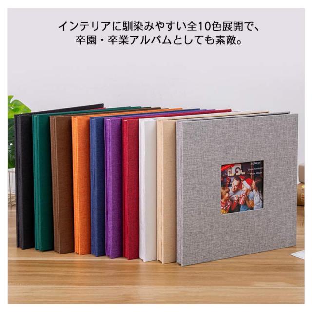 | 流行りのましかくから大きいサイズの6つ切りまで写真のサイズを気にせず、組み合わせやデコレーションが自由自在♪ L判サイズ写真最大160枚収納可能!表裏両面使えるフリー台紙20枚入りの大容量フリーアルバム。 写真の整理やデコレーションがOK〜フリー台紙だからできる手作りフォトアルバム。 思い出をいつまでも鮮明に♪写真が劣化しにくく、長期の保管に最適!また、貼ってはがせるため、写真の入れ替えも簡単にできます。 写真のほかに、チケットやポストカード、ハガキなどそのときの思い出の品を貼ったりしても。 リネン地の布張り表紙に窓抜きされたので、お気に入りの写真をセットすれば、オリジナル表紙の出来上がり♪ インテリアに馴染みやすい全10色展開で、卒園・卒業アルバムとしても素敵。 | |