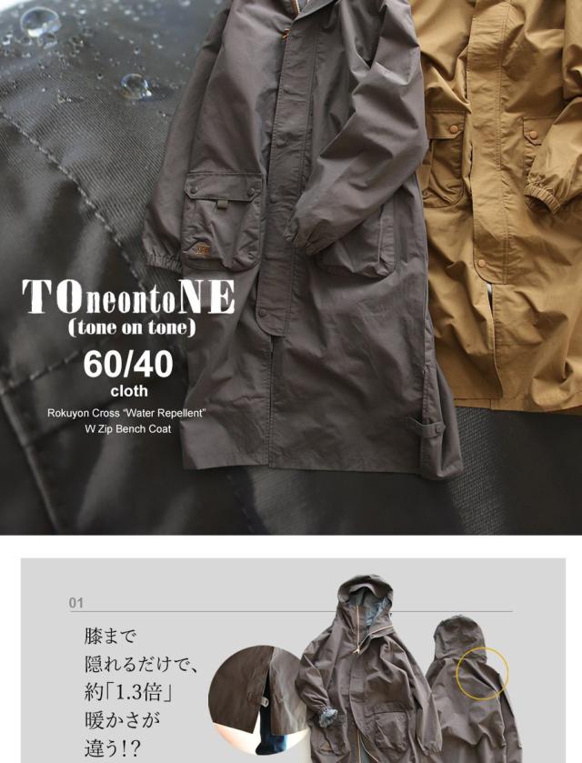 ベンチコート メンズ レディース 秋 Wジップ 袖ゴム 軽量 撥水 ハイネック フード ICカードポケット 内ポケット ロングコート マウンテンパーカー アウター スポーツ観戦 アウトドア 旅行 スッキリ 着痩せ おしゃれ 大きいサイズ TOneontoNE トーン