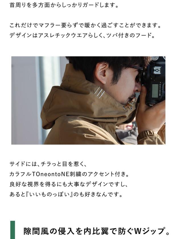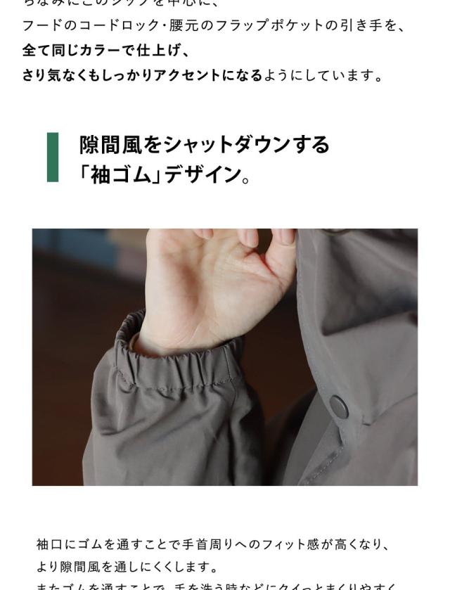 ・隙間風の侵入を内比翼で防ぐダブルジップ×袖ゴムデザイン。