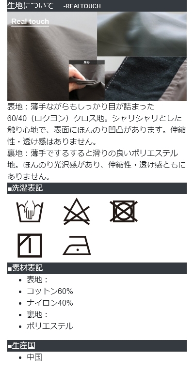 [素材]表地:コットン60% ナイロン40% 裏地:ポリエステル