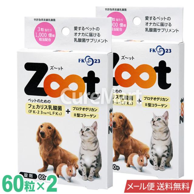 Zoot 60粒◆2個セット ペット用 乳酸菌 サプリメント 日本製【 メール便 送料無料】 zoot フェカリス菌 FK23 LFK 犬 猫 小動物 ズーット ズート ニチニチ製薬 ZOO