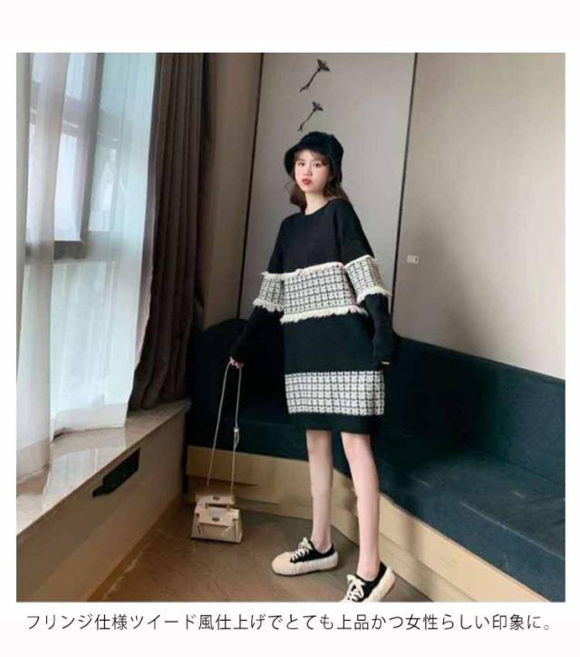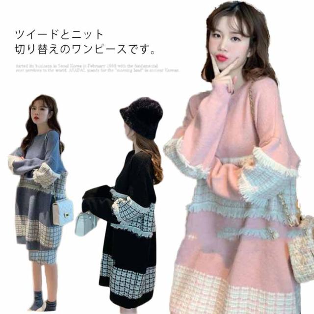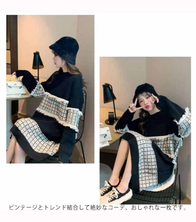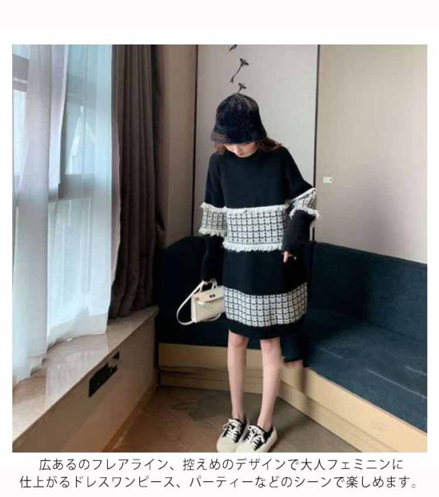 ワンピース 秋 レディース きれいめ 長袖 ツイードワンピース フレアワンピース 切り替え 上品 フェミニン 秋冬 ミディアム丈 パーティードレス 華やか おしゃれ ビンテージ 大人セクシー 大きいサイズ 大人可愛い S M L XL