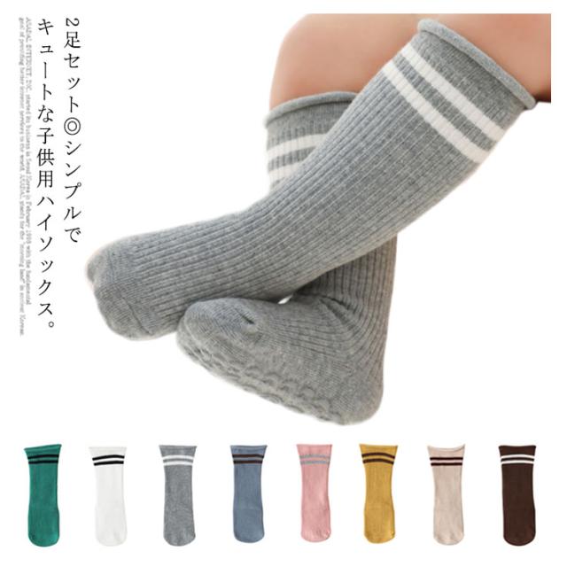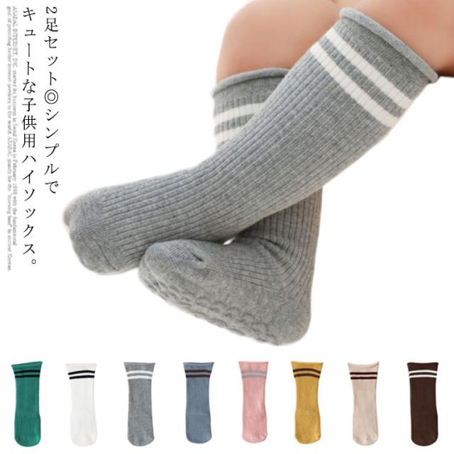 送料無料靴下 ソックス ハイソックス 2足セット ベビーソックス のびのび キッズ 子供 ベビー 赤ちゃん 男の子 女の子 ニットソックス リブニット シンプル 可愛い 厚め カジュアル 春 秋 冬 韓国風 おしゃれ