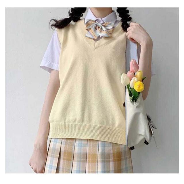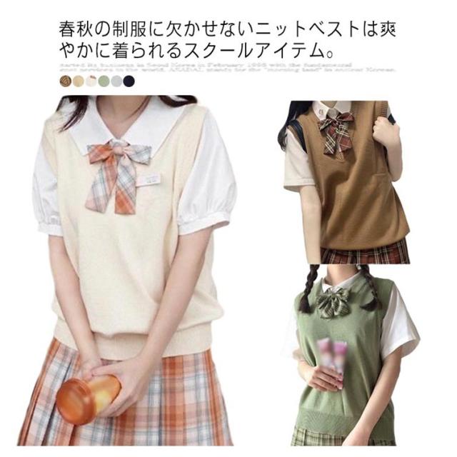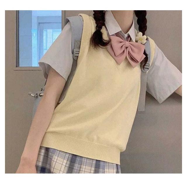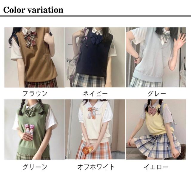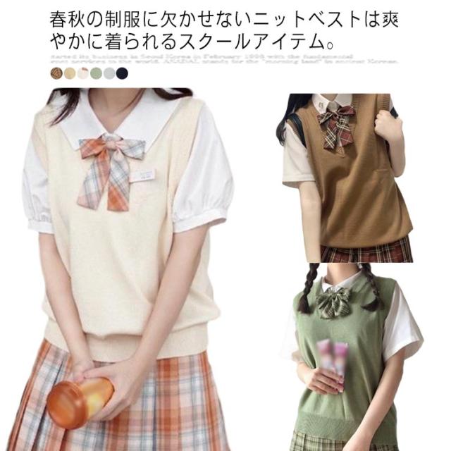 スクールベスト ニット 全6色 チョッキ 綿100% コットン 無地 Vネック ニットベスト 高校生 中学生 入学式 春夏秋冬 レディース 女の子 シンプル 制服 セーター 学校 無地 ノースリーブセーター(送料無料)