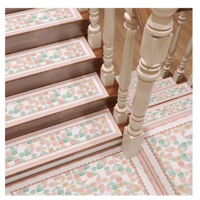 階段マット 15枚セット 55x22cm 階段カーペット 大理石調 PU 吸着マット 階段敷き 階段滑り止め マット 防音 傷防止 転倒防止 吸着階段マット 冷え対策 カット可能 防音対策 洗える ペット 高級感 花柄 チェック柄