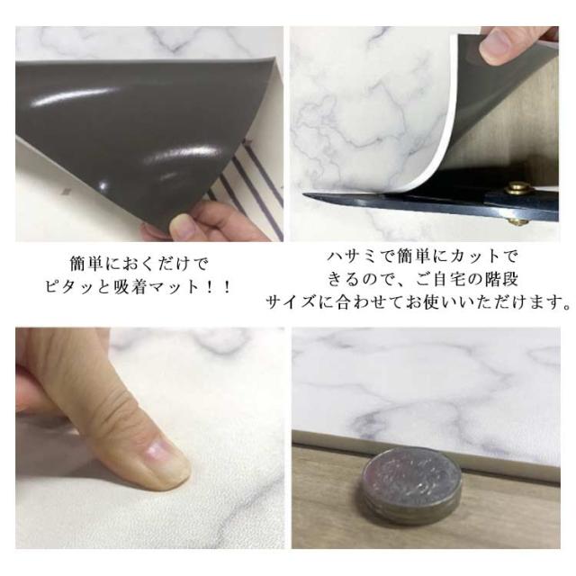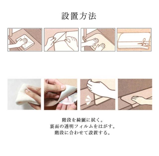 | 階段が素敵に華やかに♪ 簡単におくだけでピタッと吸着マット!! 裏面は滑りにくいゴム素材。足が滑る危険から守ります。 足音の防音対策やペット、キッズ、お年寄りの転落防止に。 汚れてもサッと拭くだけで簡単キレイ♪ ハサミで簡単にカットできるので、ご自宅の階段サイズに合わせてお使いいただけます。 | |