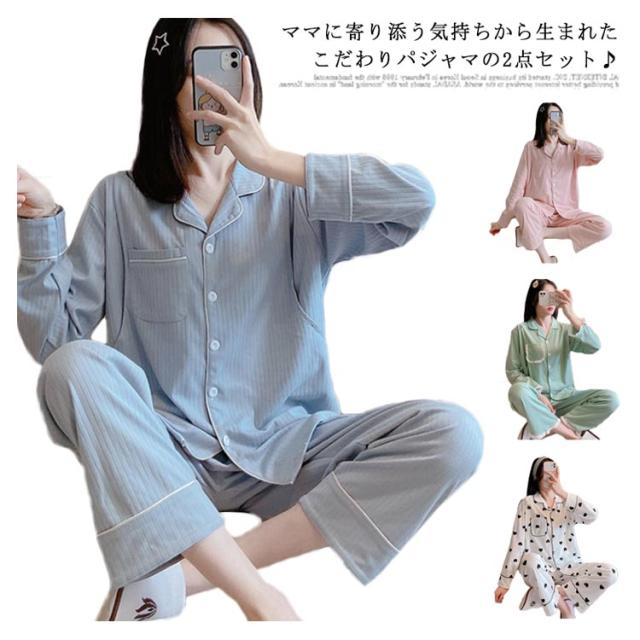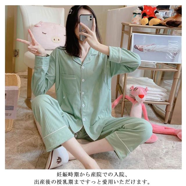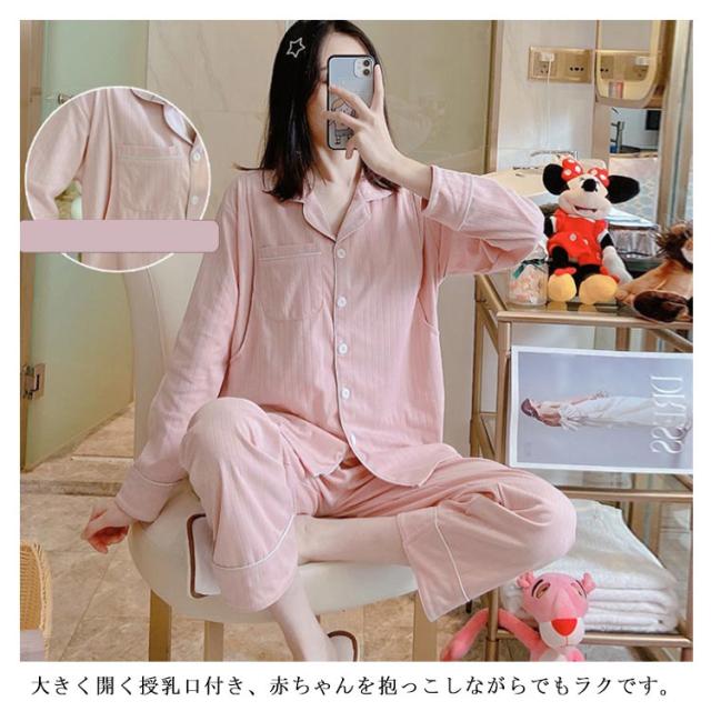 パジャマ 上下セット ルームウェア 2点セット 部屋着 ナイトウエア 寝間着 マタニティ 寝巻き 授乳服 産前 産後 妊婦服 長袖 前開き 入院 ゆったり 春秋 お洒落 授乳口付き 着脱簡単