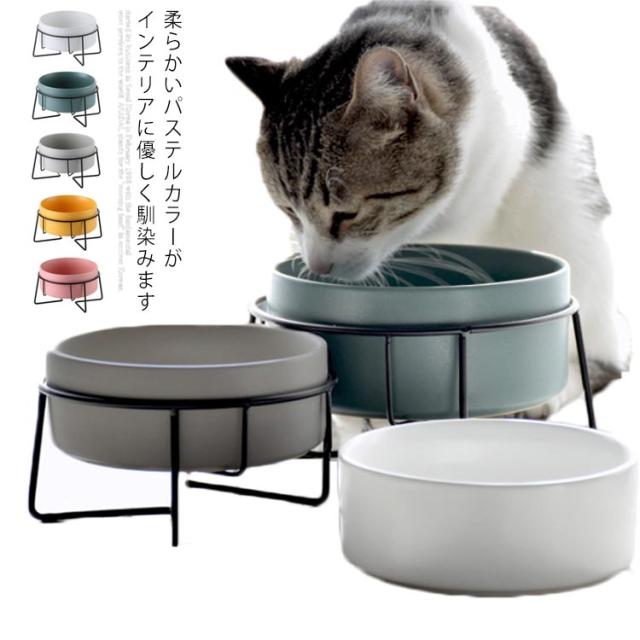 フードボウル 高さがある 陶器 スタンド 犬 猫 ペットフードボウル 餌皿 お皿 エサ 可愛い ペット食器台 パステルカラー えさ 容器 金属土台付 おしゃれ ペット