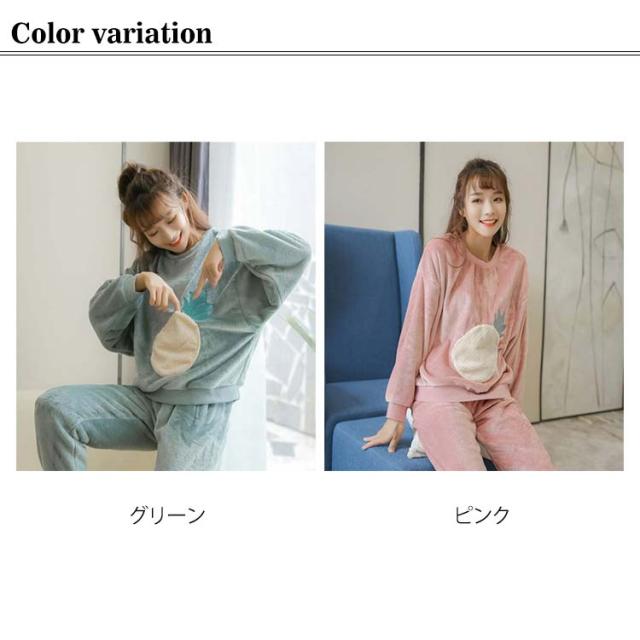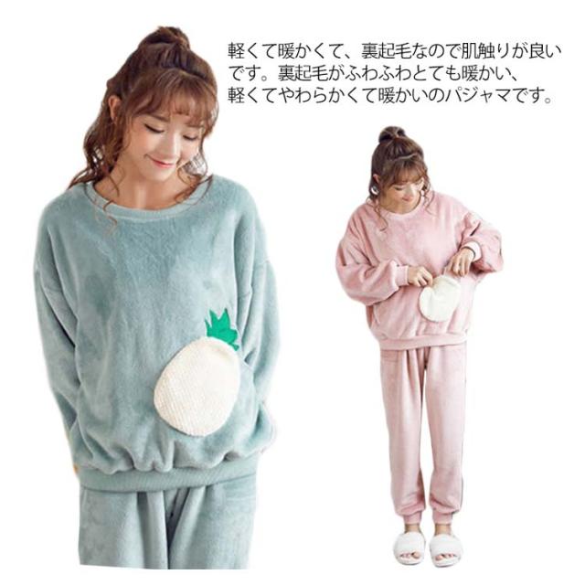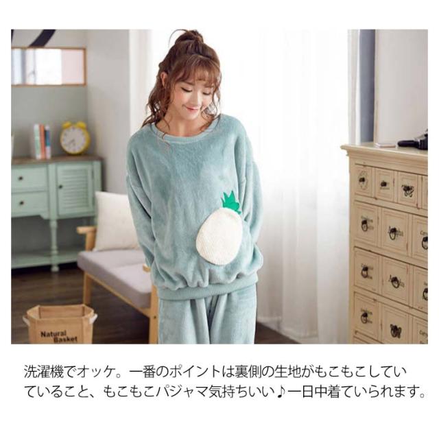 レディース パジャマ ルームウェア 冬 長袖 女子 上下セット フルーツ かわいい おしゃれ 大きいサイズ ふわふわ 暖かい 入院 長ズボン パンツ 無地 おしゃれ プレゼント