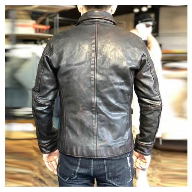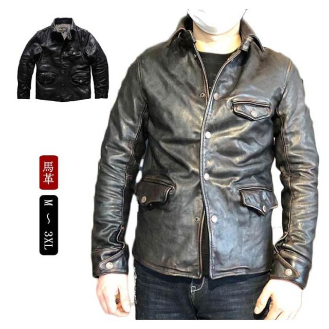 ホースレザー(馬革) テーラードジャケット レザージャケット シングルライダースジャケット 本革 茶色 レザー ボタン 本革 コート 革ジャン 革ジャケット 皮ジャン 本革ジャケット アウター MENS 通勤 男性 春服 秋服 冬服