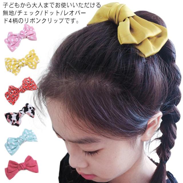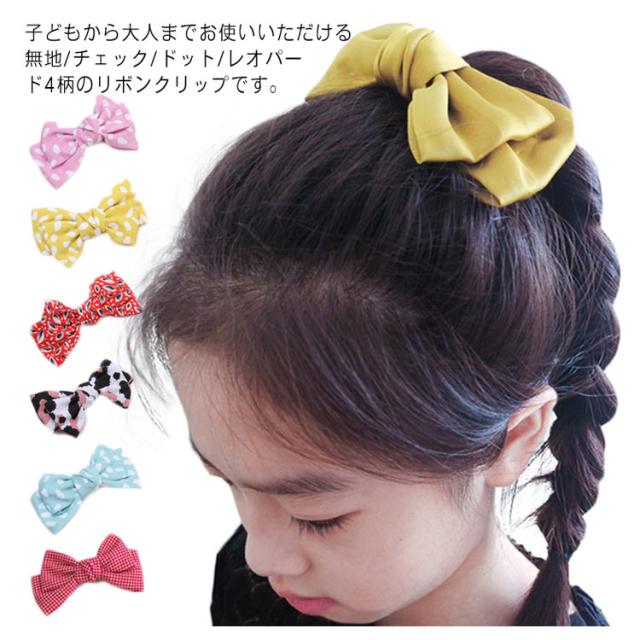 送料無料 全13色 3柄 ヘアクリップ リボン 子供用 女の子 キッズ ヘアアクセサリー チェック ドット レオパード ヘアピン サテン グログラン ギフト レディース 誕生日 プレゼント 大人 シンプル 袴 髪飾り 卒園式 入園式 入学式 かわいい 可愛い