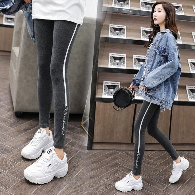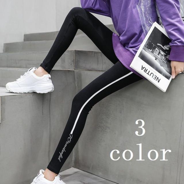 レギンス パンツ レディース 秋 サイドライン ストレッチ スキニー スポーツ おしゃれ タイト 10分丈