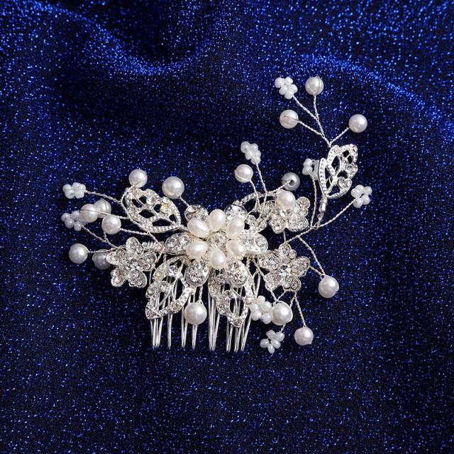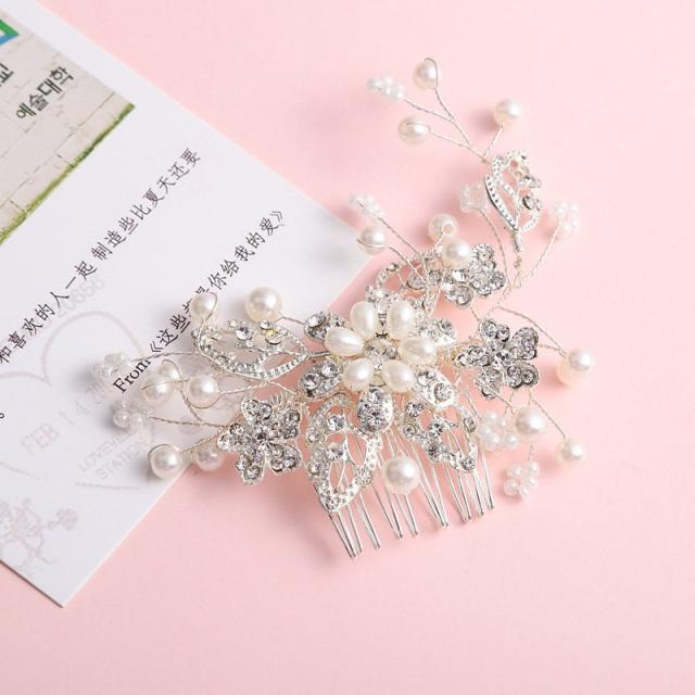 コーム ヘアアクセサリー 髪飾り かんざし レディース 女性 フェイクパール ラインストーン ビジュー フラワー リーフ 花 上品 フォーマル 結婚式