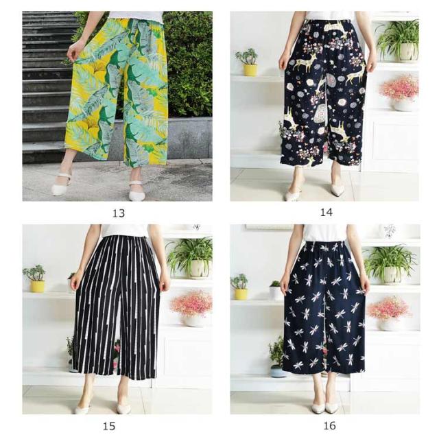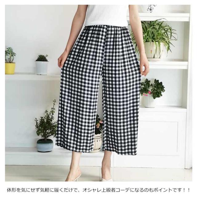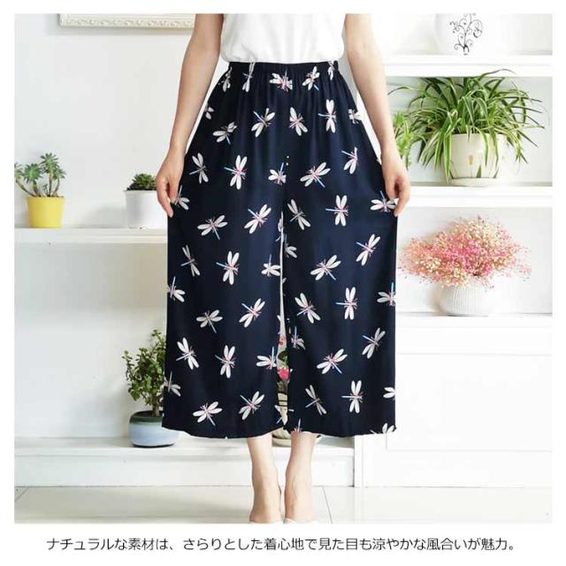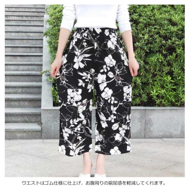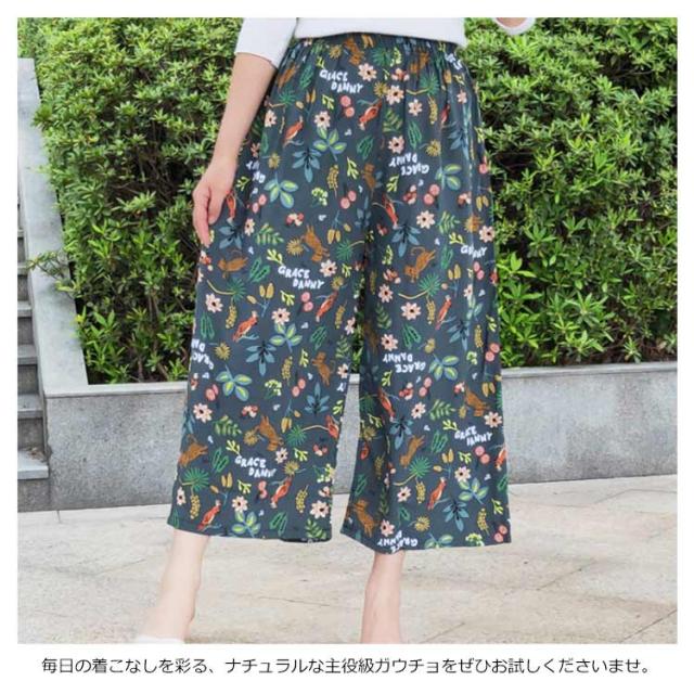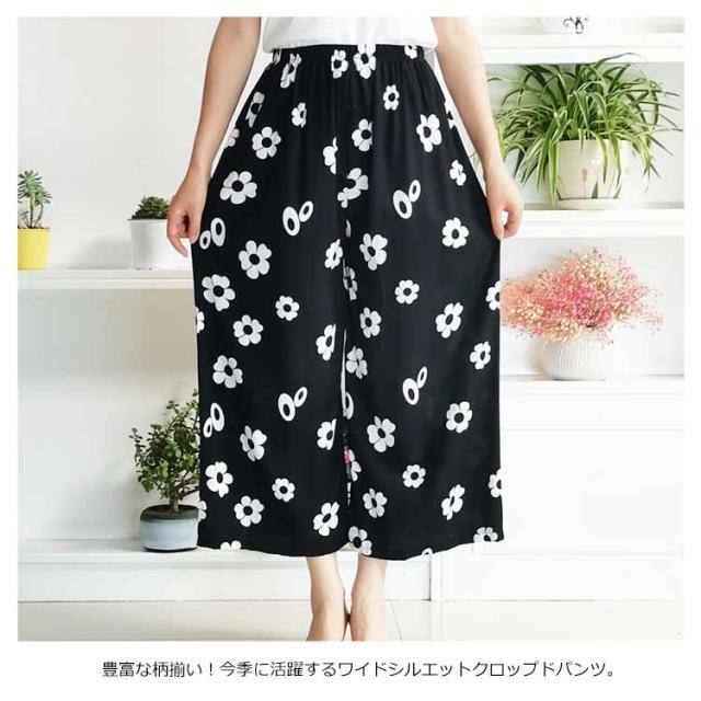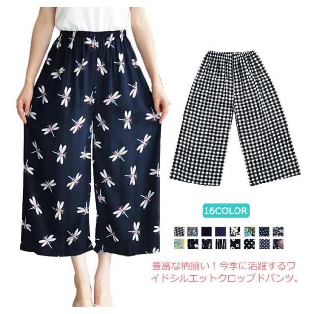 豊富な柄揃い!柄パンツ クロップドパンツ ガウチョパンツ ワイドパンツ レディース ワイドシルエット カジュアルパンツ ドット柄 チェック柄 花柄 ストライプ柄 ボトムス 薄手 ゆったり 春夏 送料無料
