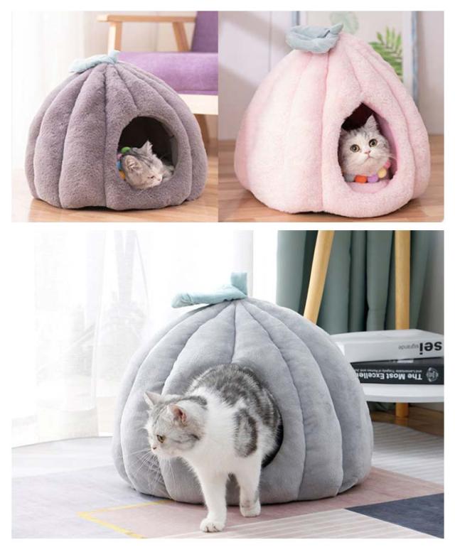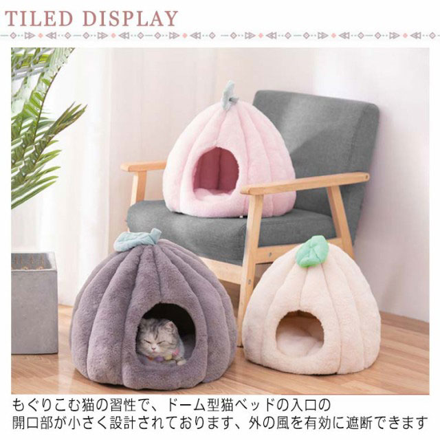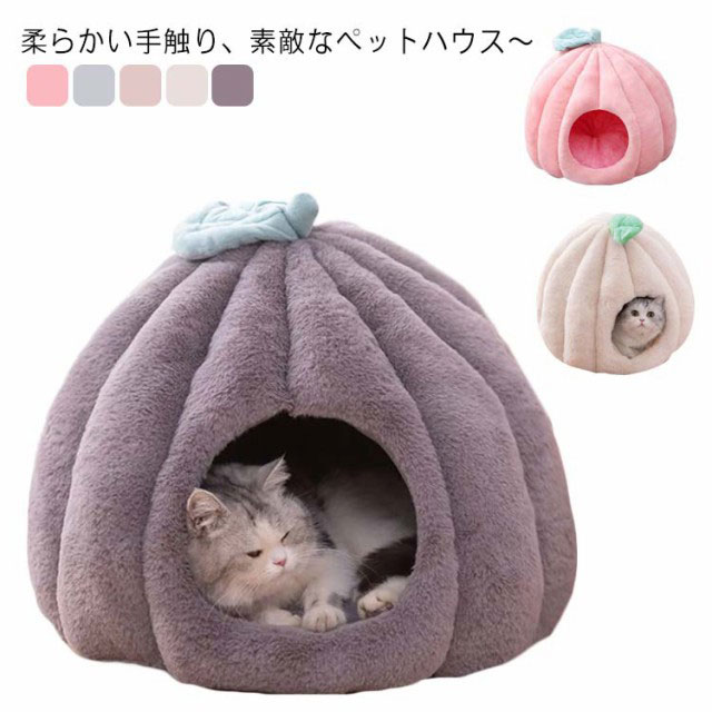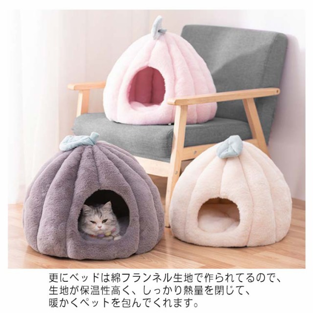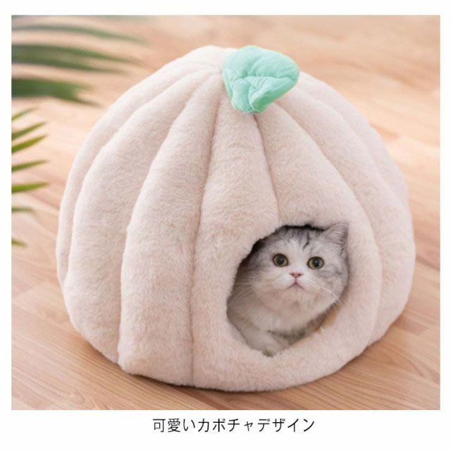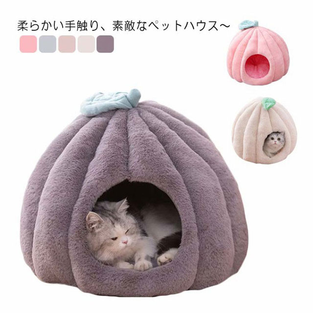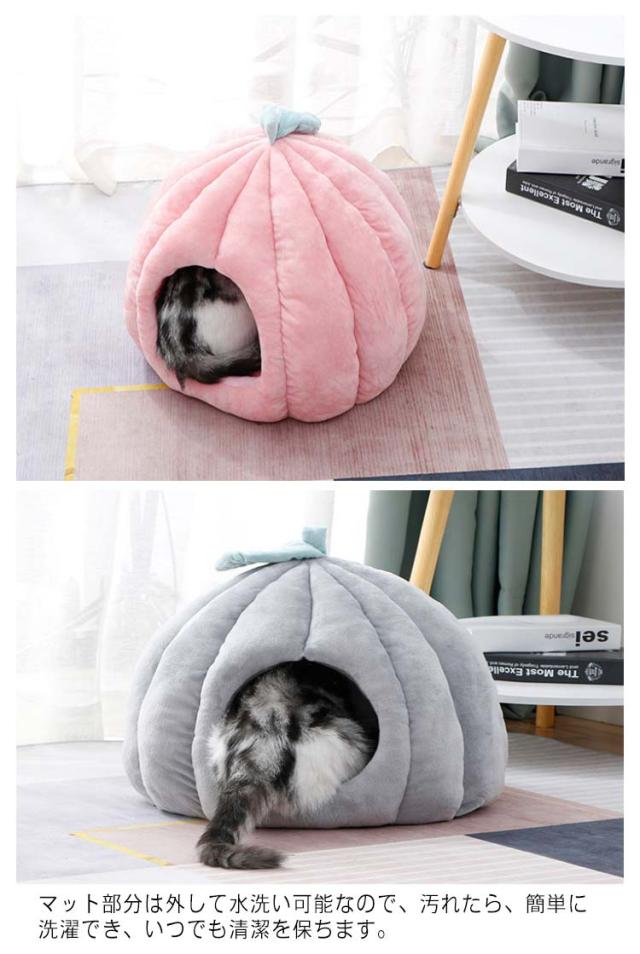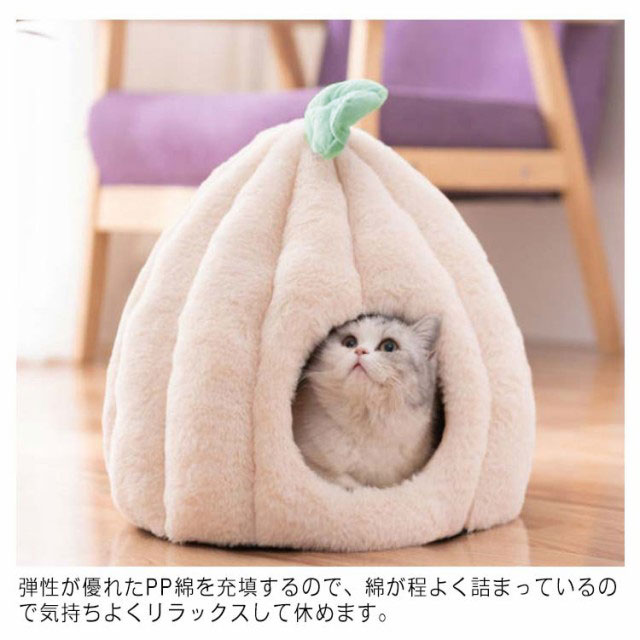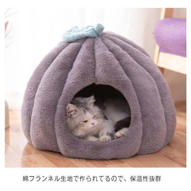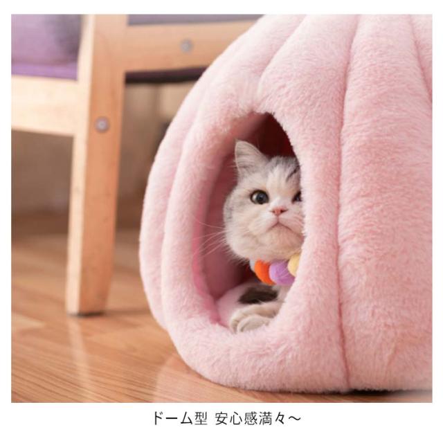 猫 ベッド ドーム型 キャットハウス ペット用ベッド 秋冬 あったか クッション 猫 小型犬 カボチャ 洗える 半密閉式 隠れ家 保温防寒 寒さ対策 あったかグッズ 滑り止め 快適 もこもこ 四季通用 柔らかい