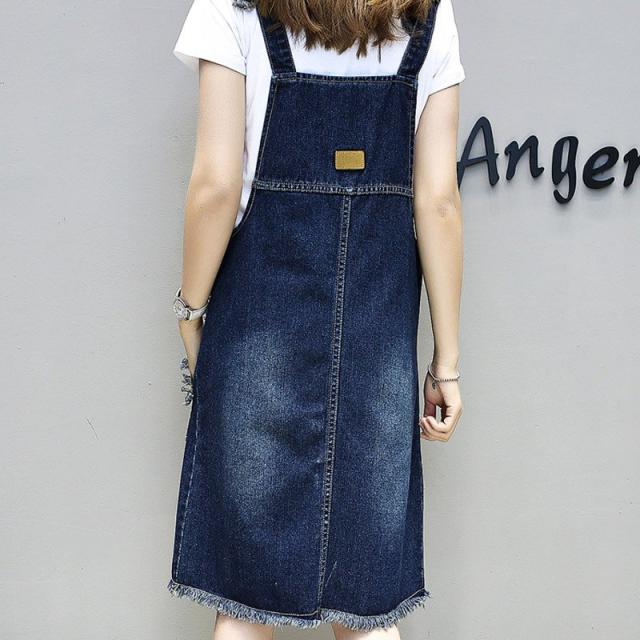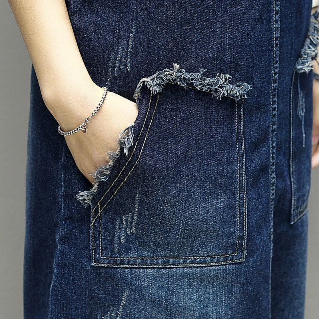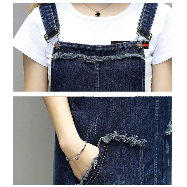 ジャンパースカート レディース 女性 ボトムス 膝丈 デニムカラー ダメージ加工 ポケット カジュアル ラフ かわいい おしゃれ