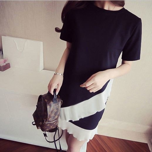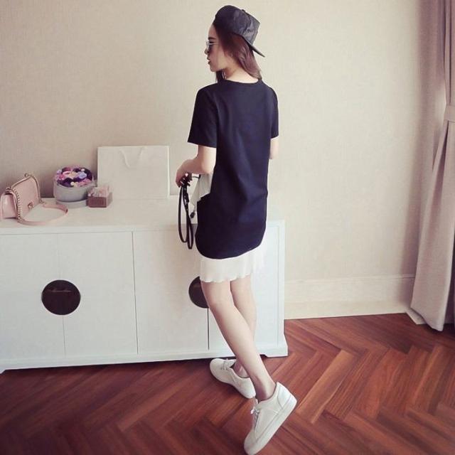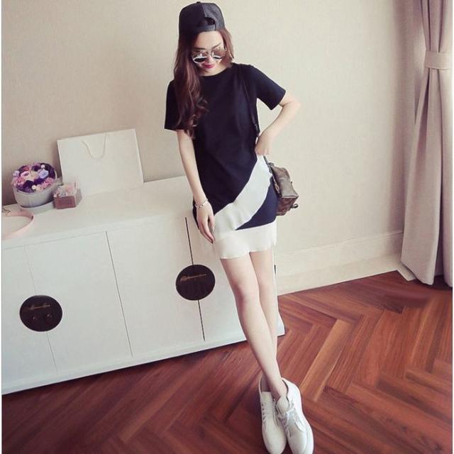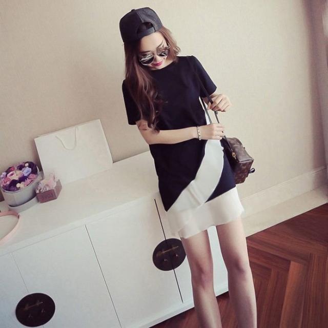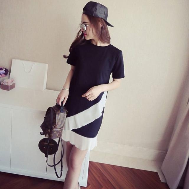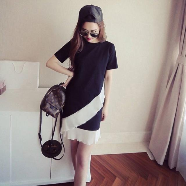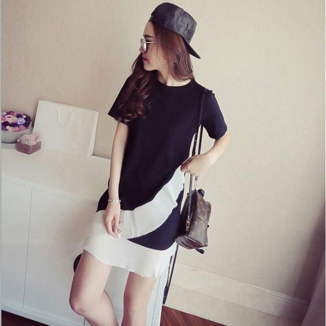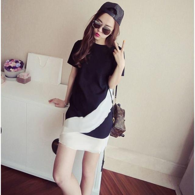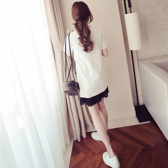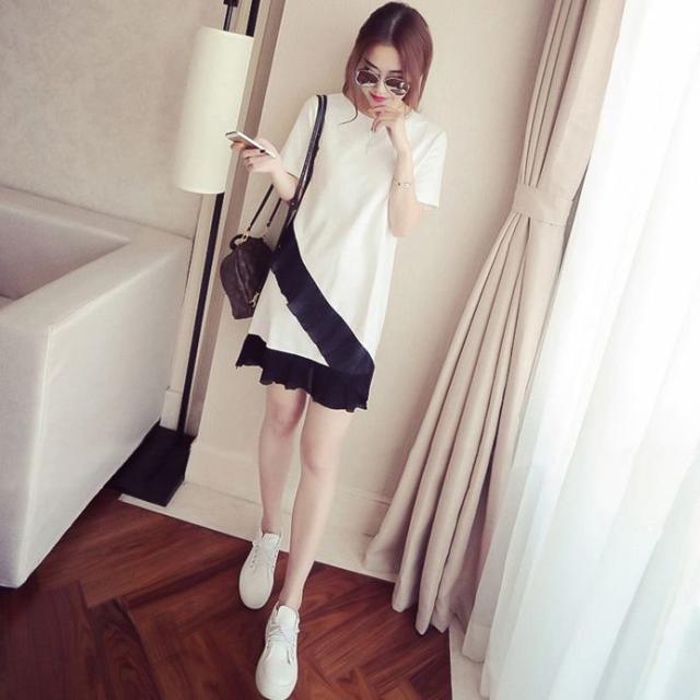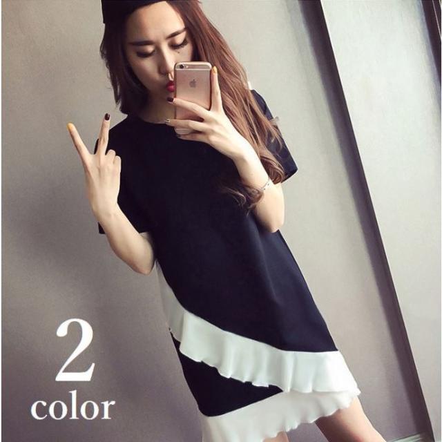 Tシャツワンピース レディース ミニ丈 クルーネック 半袖 フリル カシュクール風 かわいい おしゃれ 女性 女の子