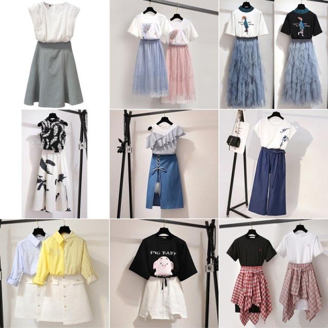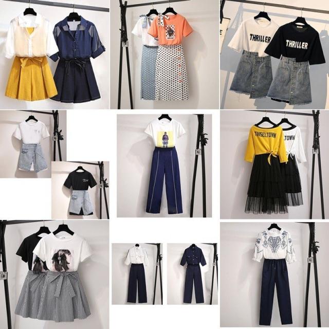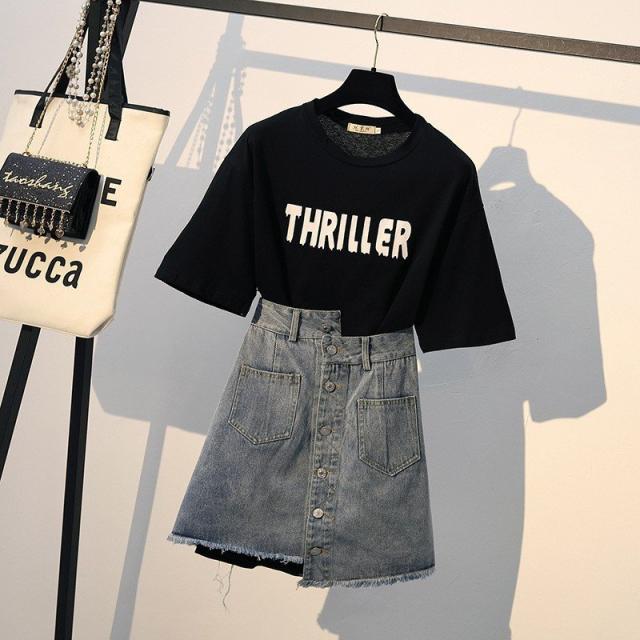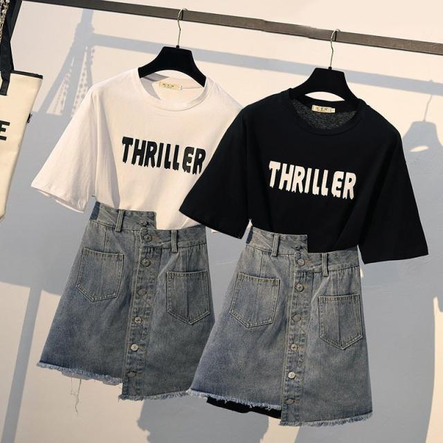 セットアップ ツーピース レディース Tシャツ スカート 上下セット 半袖 ラウンドネック 丸首 ミニスカート デニム ジーンズ カジュアル