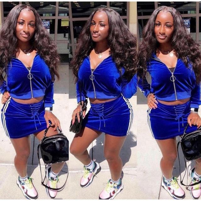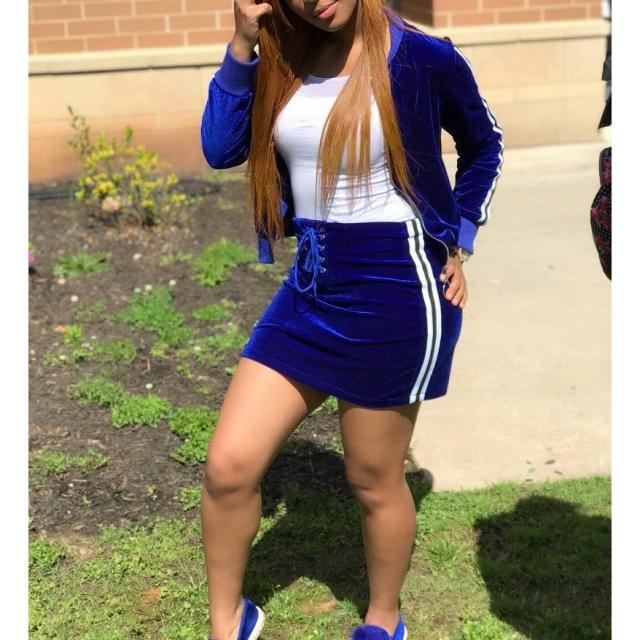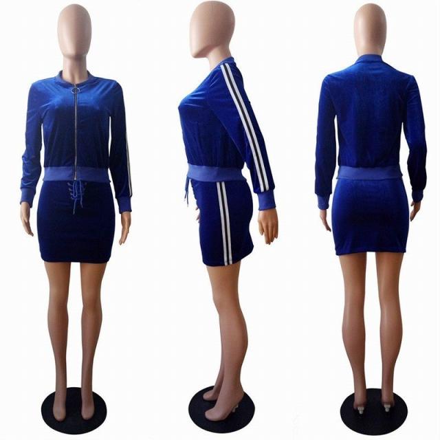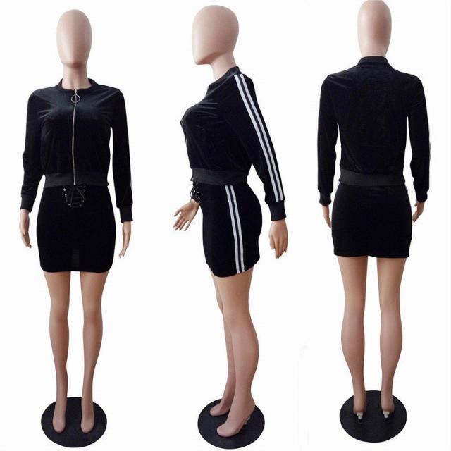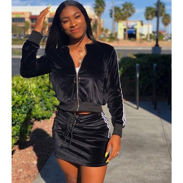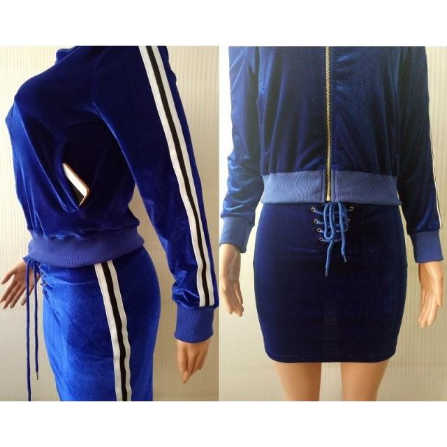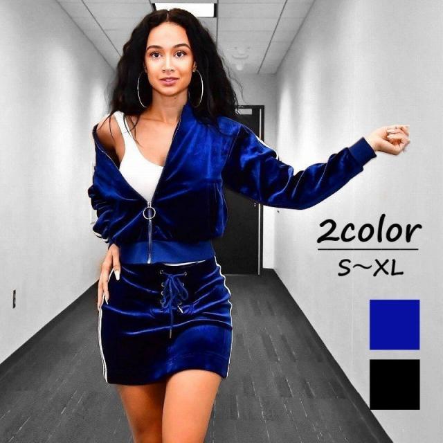 上下セット セットアップ ベロア ジップパーカー ミニスカート タイト ライン入り ジャージ ポケット付き 長袖 ダンス 衣装 B系