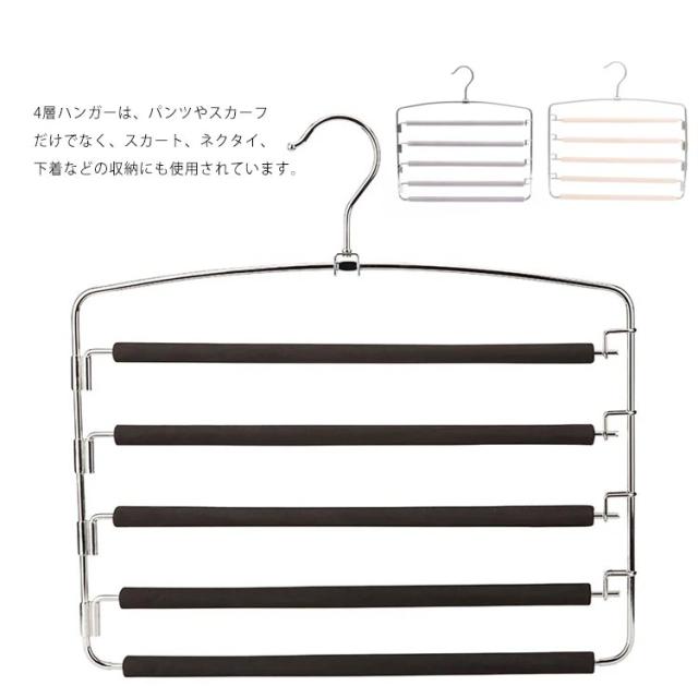 ハンガー ズボンハンガー スラックスハンガー パンツラック ズボン用 4段 回転可能 ボトム ネクタイ スラックス パンツ 収納 クロゼット収納 メンズ シワ防止 滑らない 掛けやしい 取り出す簡単 スーツ 衣類 省スペース 便利グッズ 便利 新生活