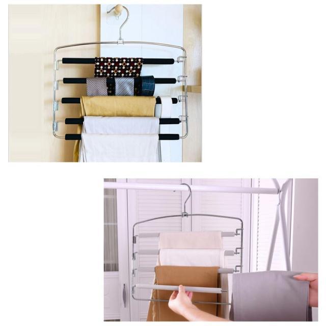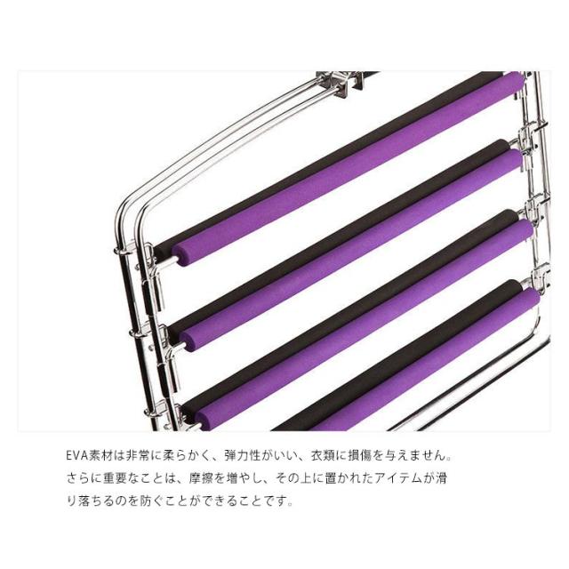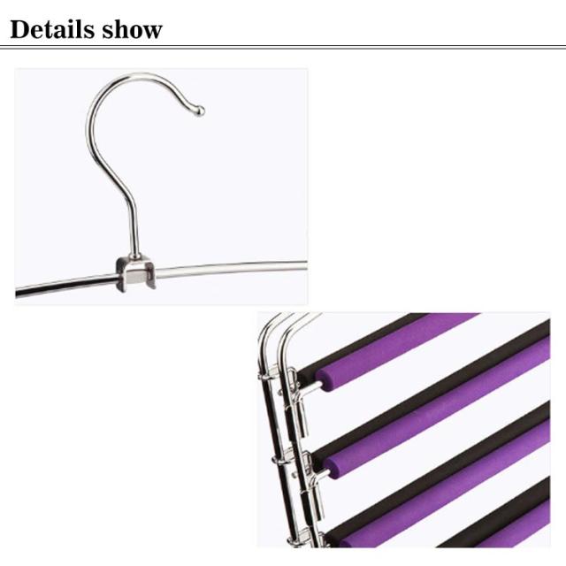 | 4層ハンガーは、パンツやスカーフだけでなく、スカート、ネクタイ、下着などの収納にも使用されています。 上部のフックは360度回転できます、方向を自由に調整できます。それにより、ズボンハンガーラックを外さずにクローゼットから衣類を簡単に取り出すことができます。 EVA素材は非常に柔らかく、弾力性がいい、衣類に損傷を与えません。さらに重要なことは、摩擦を増やし、その上に置かれたアイテムが滑り落ちるのを防ぐことができることです。 各スイングアームを左右に回転させることができ、衣服は非常に簡単に掛けたり、外したりできます。 優れたデザインにより、パンツやスカートが吊り下げられやすくなり、クローゼットにより広い空間を作り出す。 | |