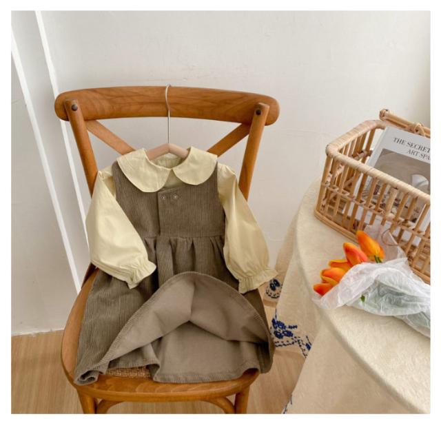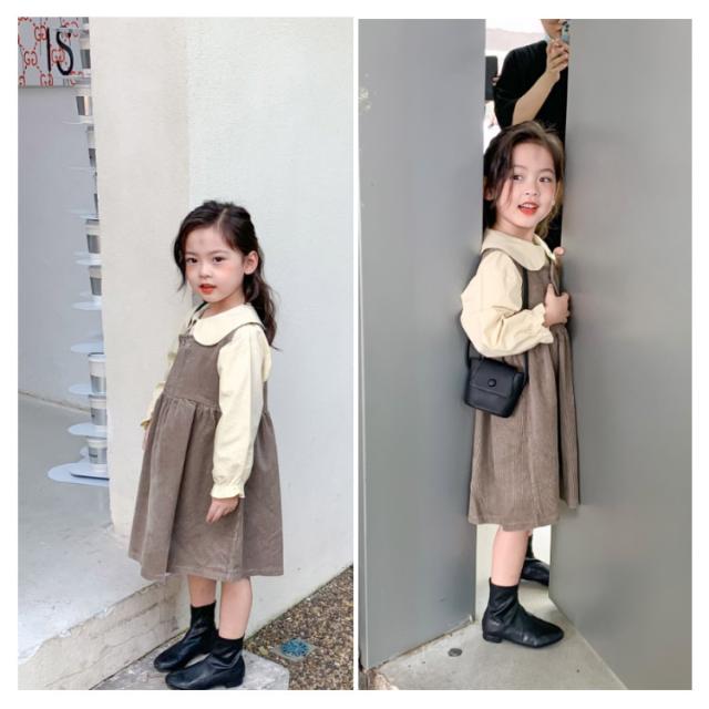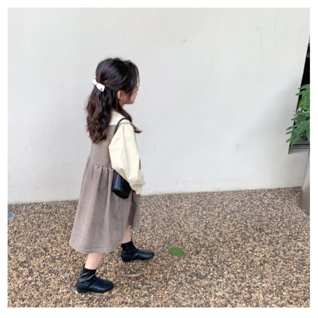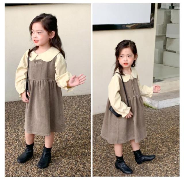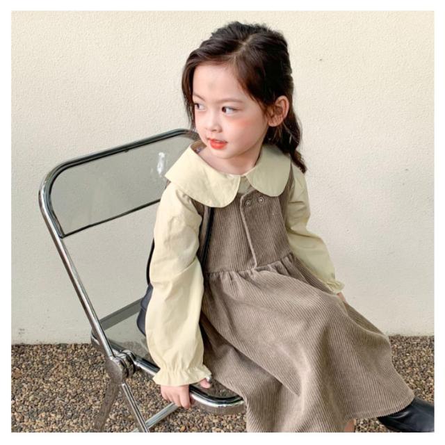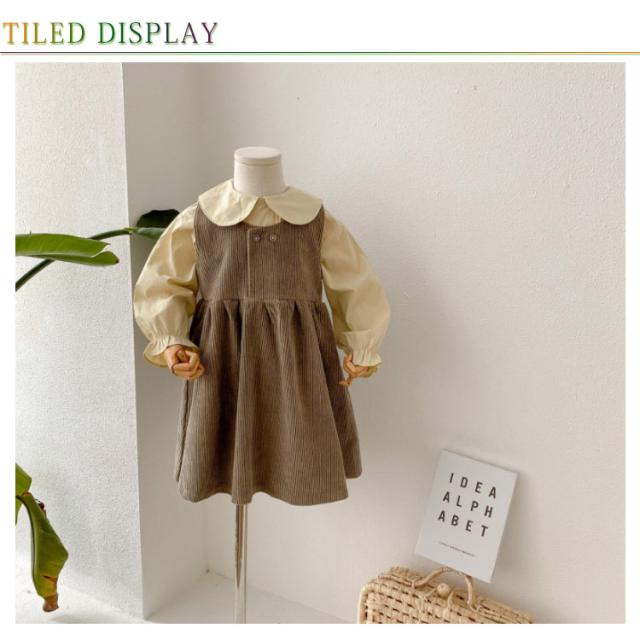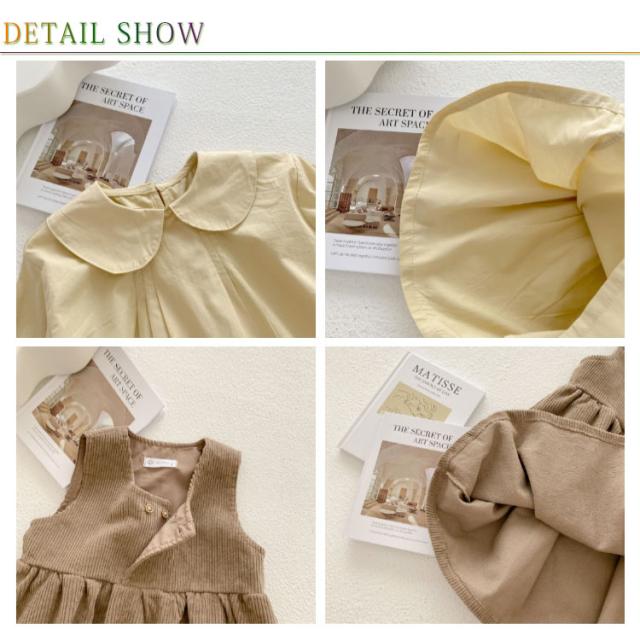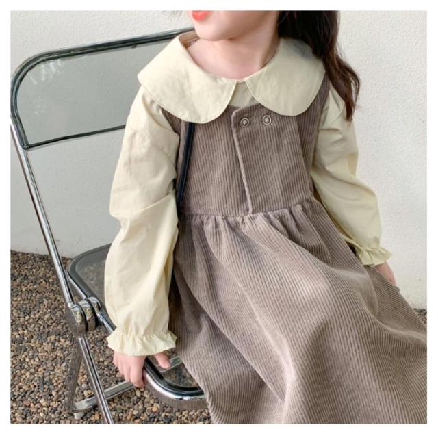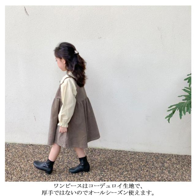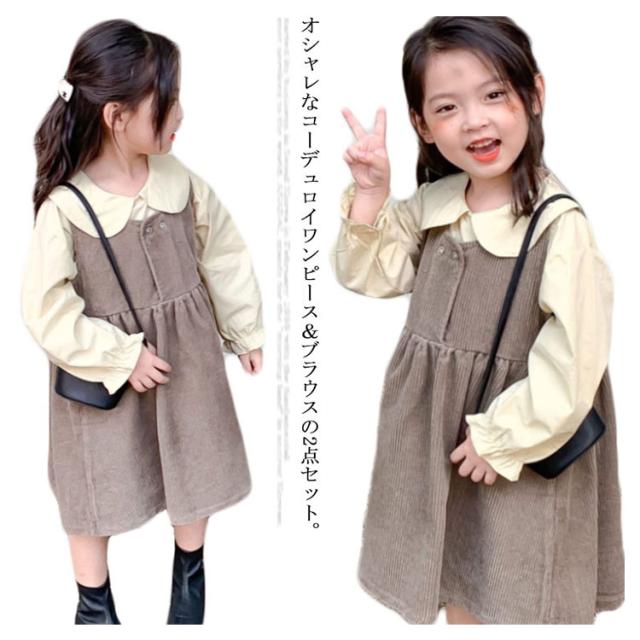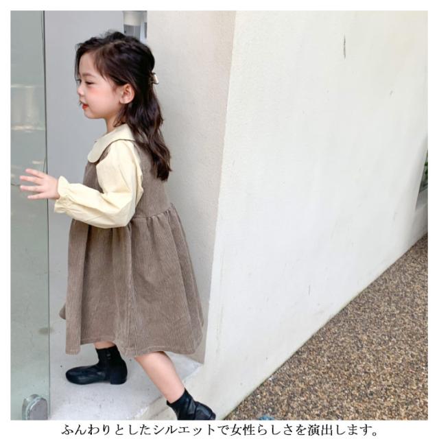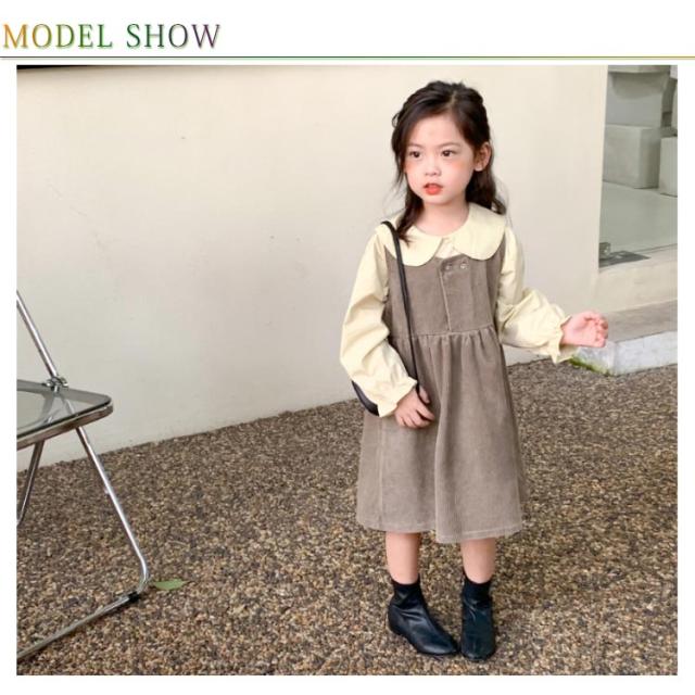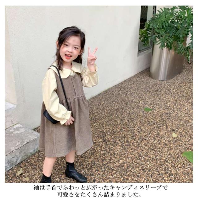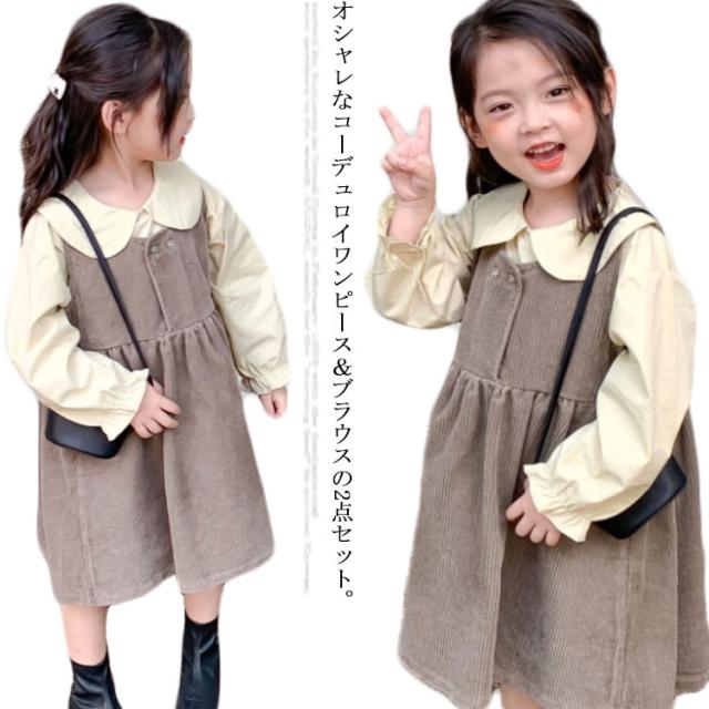 【送料無料】子供服 セットアップ 2点セット キャミワンピース コーデュロイ ノースリーブワンピ ブラウス プルオーバー トップス 長袖 ボリューム袖 バルーンスリーブ 折り襟 重ね着 キッズ衣装 韓国子ども服 ワンピース 女の子 キッズ 子供服 普段着