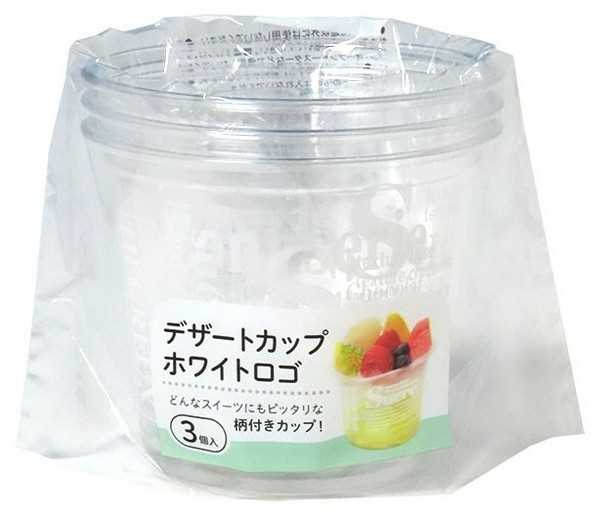 デザートカップ ホワイトロゴ 容量200ml 3個入 (100円ショップ 100円均一 100均一 100均)