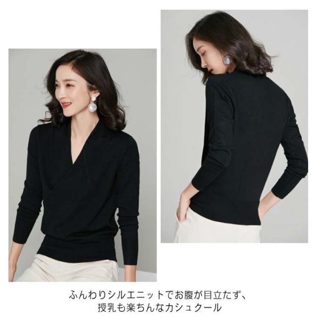 | チクチク感なくもっちりとした肌当たりが心地良い! 伸びが良く、体に沿って優しくフィットします。 左右どちらからでもサッと授乳タイム 通勤着?授乳服両方使える優秀デザイン 優しい風合いとこだわりデザインはそのままに、優れた保温性をプラス! ふんわりシルエニットでお腹が目立たず、授乳も楽ちんなカシュクール | |