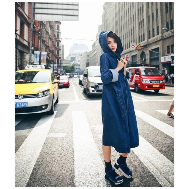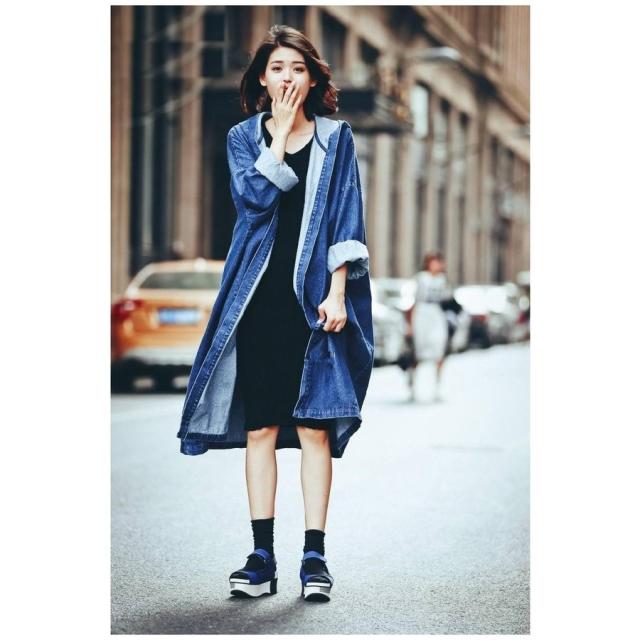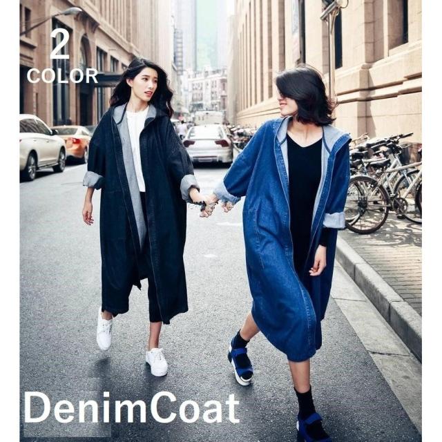 デニムコート フード付き ガウン ロングコート 長袖 レディース カジュアルスタイル Aライン シンプル 無地 コットン