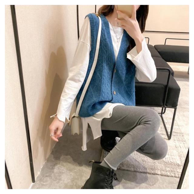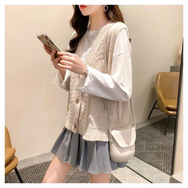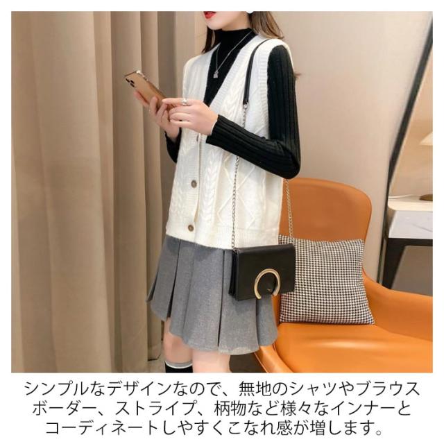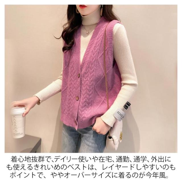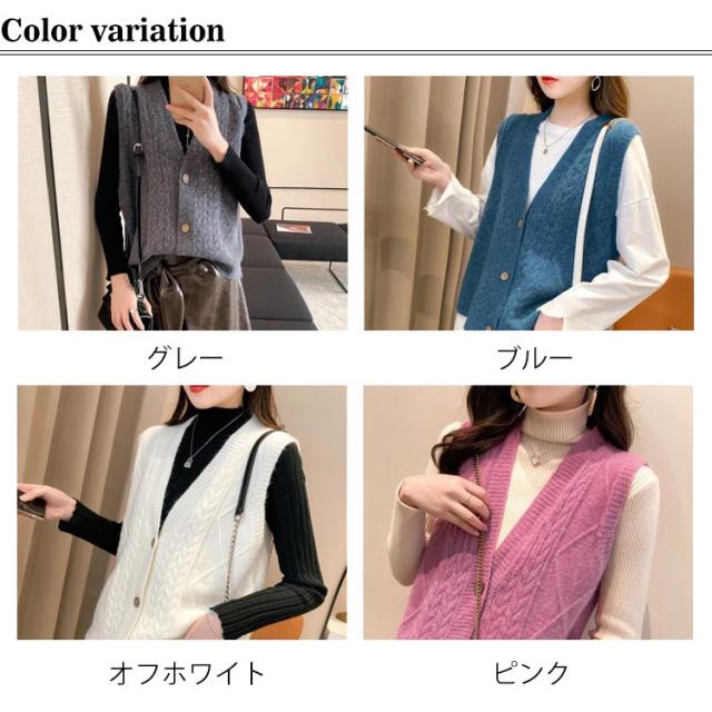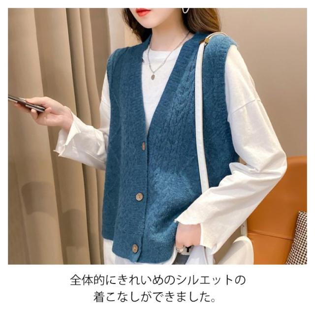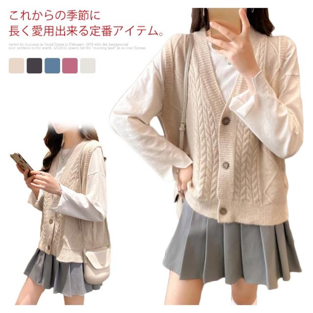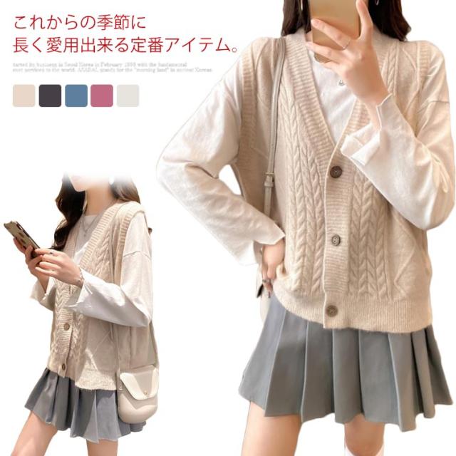 送料無料 ニットベスト レディース 前開き ケーブル vネック 韓国 ショート丈 スクール ロング カーディガン ノースリブ レイヤード 春 秋冬 ボタン付き 無地 トップス カジュアル