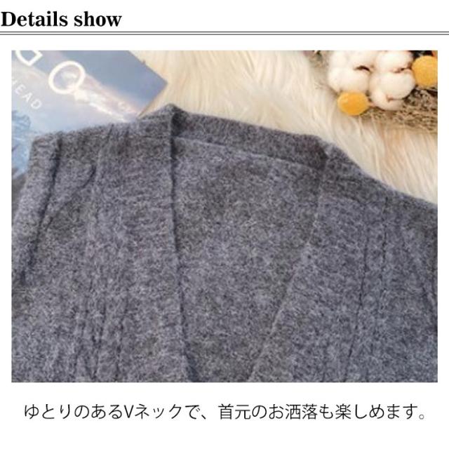| これからの季節に長く愛用出来る定番アイテム。春秋冬の季節の変わり目にもさっと羽織れるシンプルなガウンタイプのニットセーターです。 今やお洒落女子のマストアイテムに欠かせないニットベスト。ゆとりのあるVネックで、首元のお洒落も楽しめます。両サイドにポケットがあり、便利性にも優れています。 全体的にきれいめのシルエットの着こなしができました。インナーを選ばずにレイヤードスタイルを楽しめるよう、袖口が広めに作りました。裾はアシンメトリーカットにすることで、体型カバーはもちろん、スタイルアップ効果も! シンプルなデザインなので、無地のシャツやブラウス、ボーダー、ストライプ、柄物など様々なインナーとコーディネートしやすくこなれ感が増します。 着心地抜群で、デイリー使いや在宅、通勤、通学、外出にも使えるきれいめのベストは、レイヤードしやすいのもポイントで、ややオーバーサイズに着るのが今年風。 | |