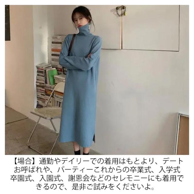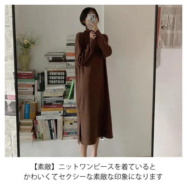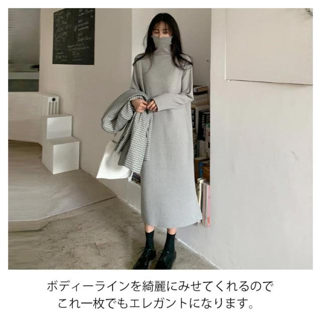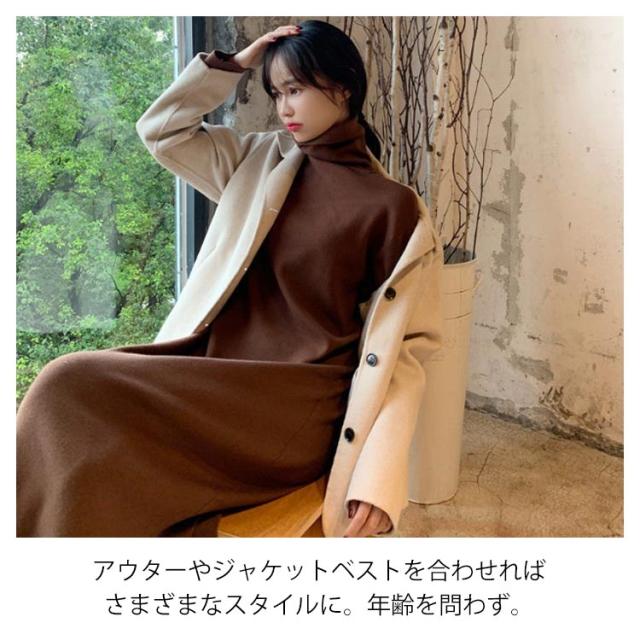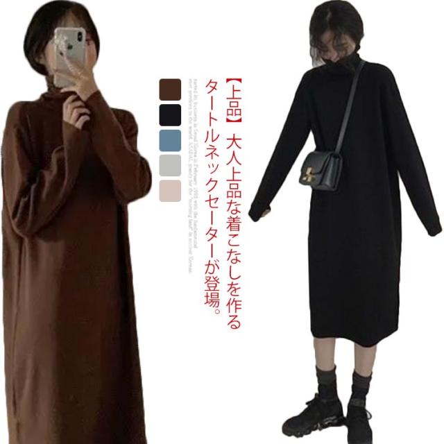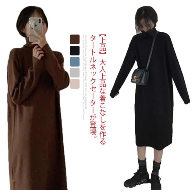 タートルネック ロング マキシ丈 レディース 冬 スリット ゆったり 大きいサイズ 体型カバー おしゃれ 男ウケ 20代 30代 40代 50代