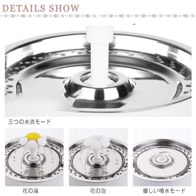 | ステンレス製 清潔簡単?無毒で無臭 三つの水流モード 花の滝 花の泡 優しい噴水モ一ド LED水位インジケーターは、いつ水を追加するかを決定するのに役立ちます。同時に、フィルタが汚れているかどうかに注意を払う必要があります。LED水位インジケーターは、いつ水を追加するかを決定するのに役立ちます。同時に、フィルタが汚れているかどうかに注意を払う必要があります。 | |