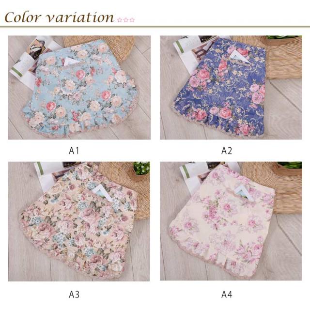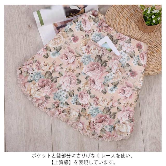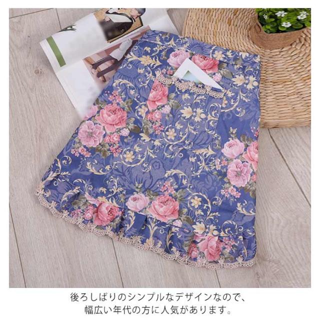 | 後ろしばりのシンプルなデザインなので、幅広い年代の方に人気があります。 ポケットと縁部分にさりげなくレースを使い、【上質感】を表現しています。 | |