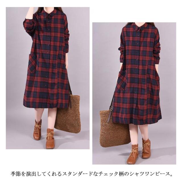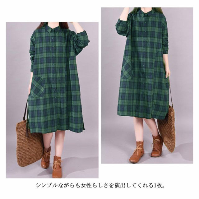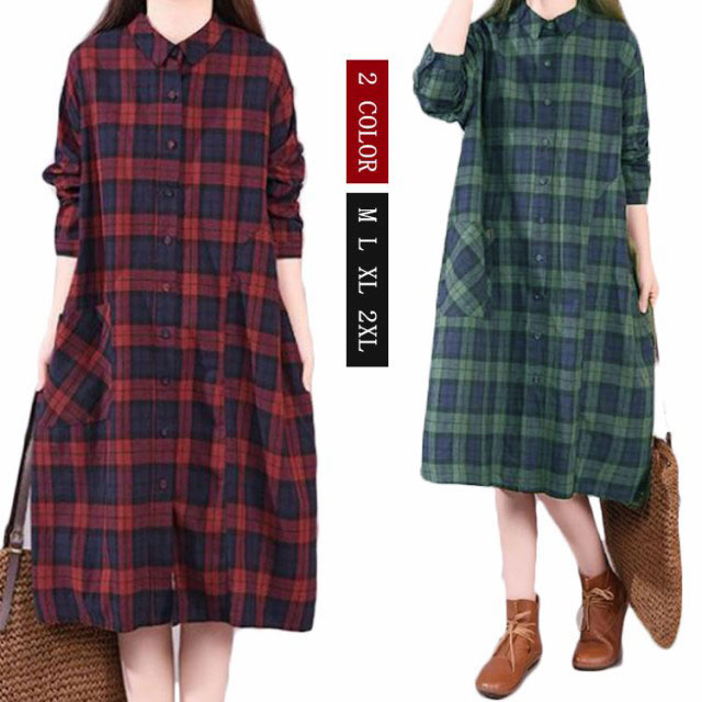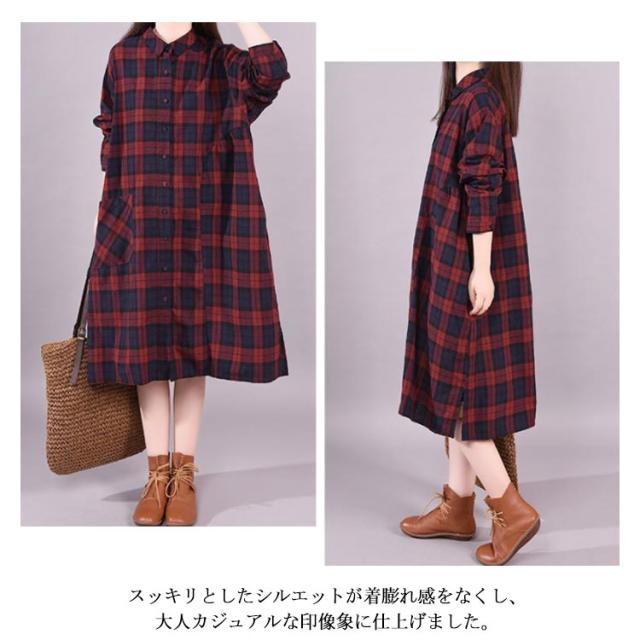 シャツワンピース 長袖 ロング ワンピース 秋 春秋 シャツワンピース チェック マキシ丈 シャツワンピース ロング丈 ゆったり 着痩せ 春 秋 シンプル ロングシャツ マキシワンピース シャツ 体型カバー
