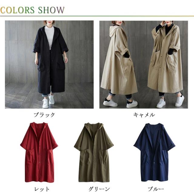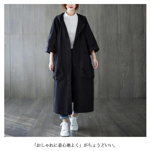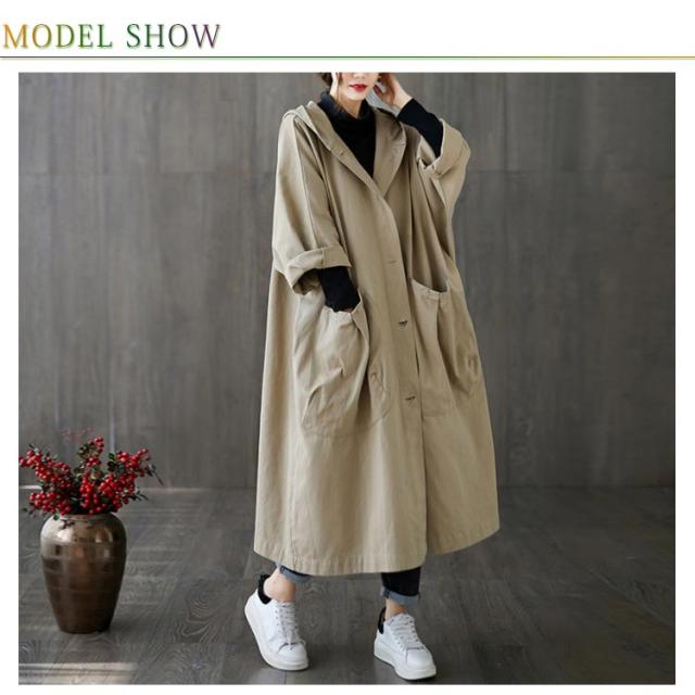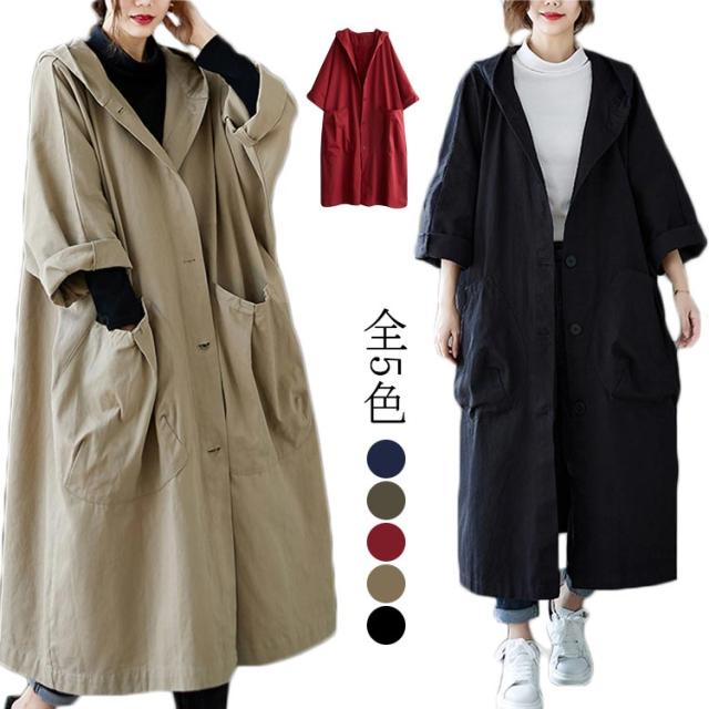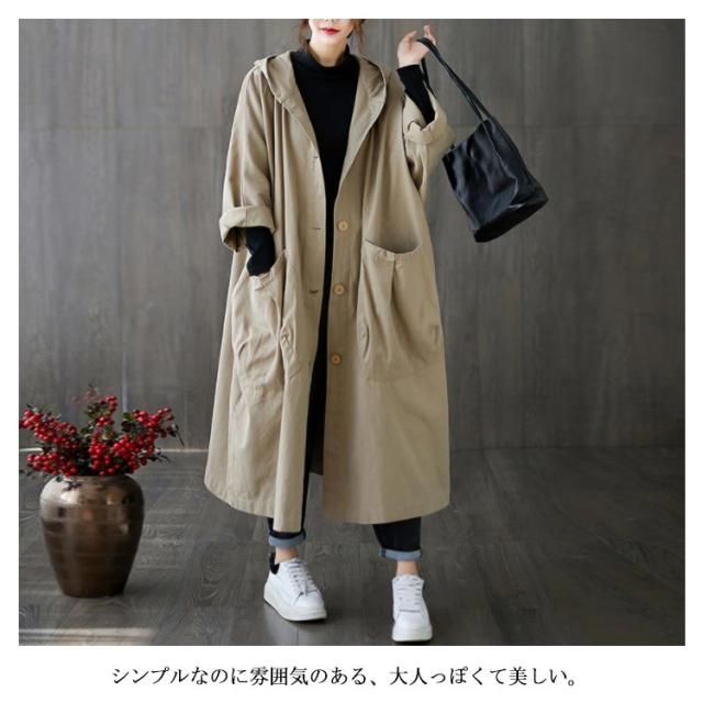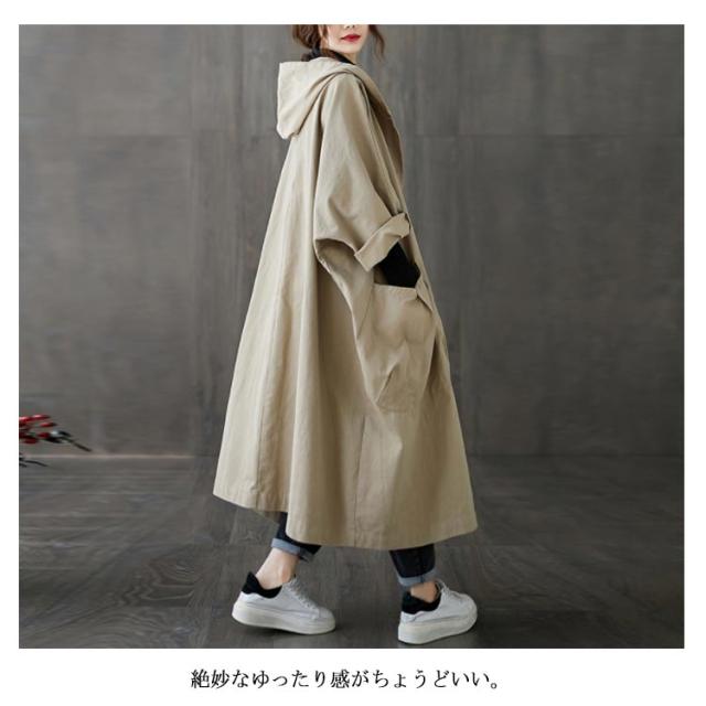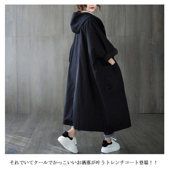 トレンチコート レディース スプリングコート ロング フード付き 無地 ロングコート フード レディース ロング丈 おしゃれ コート 大きいサイズ 高級 シンプル 大人 アウター Aライン ミドル丈コート 秋コート 春コート