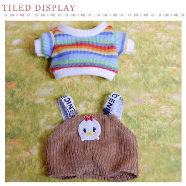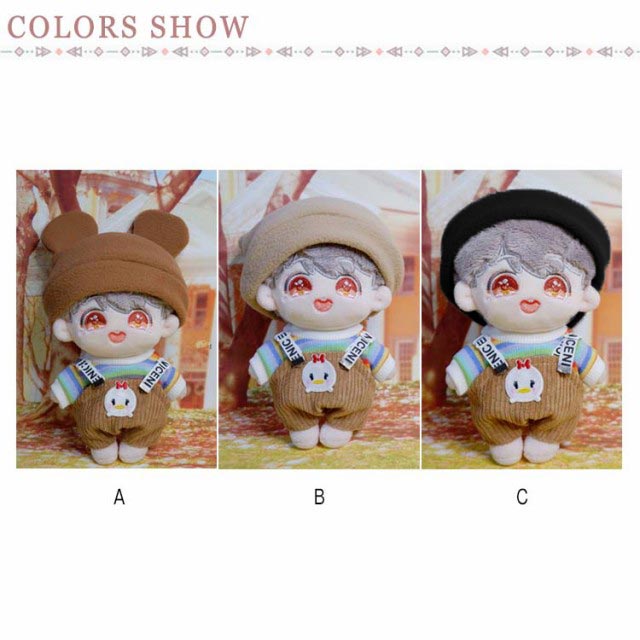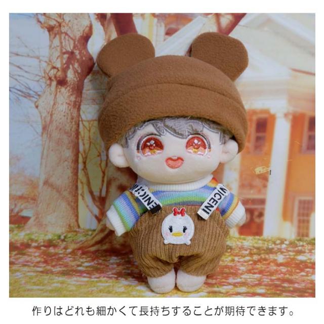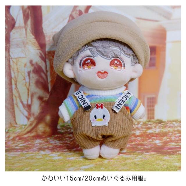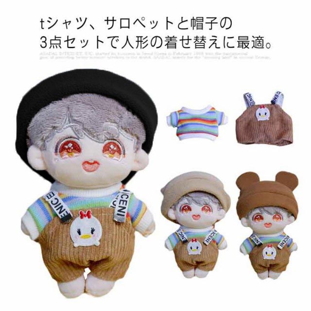 (送料無料)ぬいぐるみ用服 15センチ 20センチ 15cm 20cm tシャツ サロペット 帽子 耳つき 3点セット KPOP アイドル 3カラー 日常服 人形 ドール 洋服 衣装 服 おきがえ 着せ替え