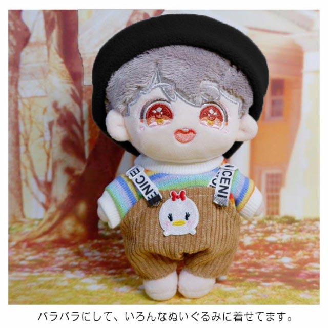| かわいい15cm/20cmぬいぐるみ用服。 tシャツ、サロペットと帽子の3点セットで人形の着せ替えに最適。 バラバラにして、いろんなぬいぐるみに着せてます。 作りはどれも細かくて長持ちすることが期待できます。 | |