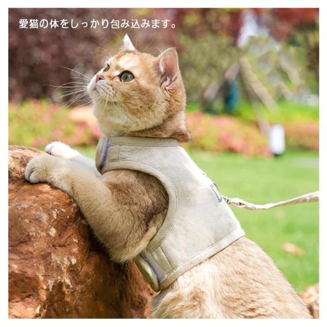 全3色 猫 猫用 ハーネス リード付 ペット ベスト 犬 かわいい 簡単装着 散歩 胴輪 お出かけ 快適 着脱簡単 ネコ用品 ペットグッズ ペット用品 反射材 お散歩グッズ 送料無料 マジックテープ チワワ