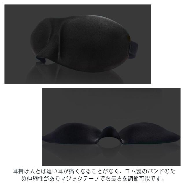| (高い遮光性)目の形状に合わせた3Dフォルムが高い遮光性を実現!目への圧迫感もなく、まばたきをしても不快に感じない目元周辺のスペースがあります。 眠りに必要なメラトニンの分泌を促進し、”ベットに入ってから眠れない時間"を減らします。 (ヘッドバンドタイプ)耳掛け式とは違い耳が痛くなることがなく、ゴム製のバンドのため伸縮性がありマジックテープでも長さを調節可能です。 (抜群の通気性)鼻を覆う部分をカットしたデザインのため、通気性が高く蒸れる心配もありません。 呼吸もしやすく快適に睡眠できます。 | |