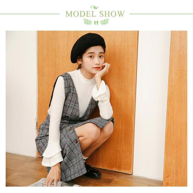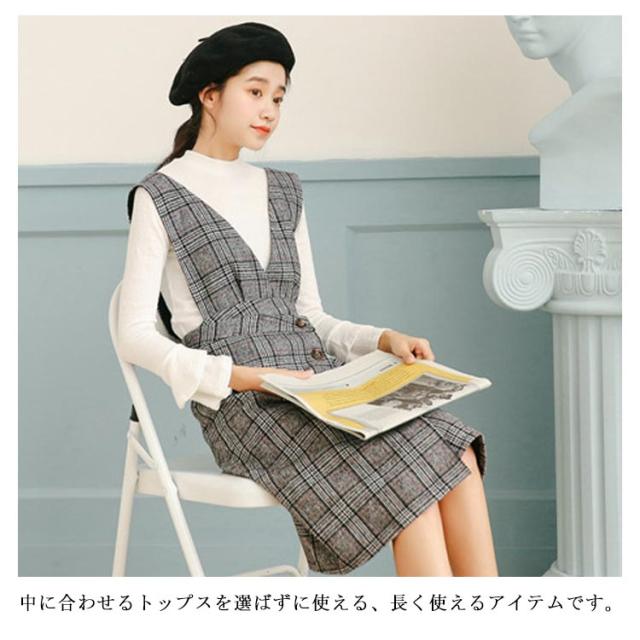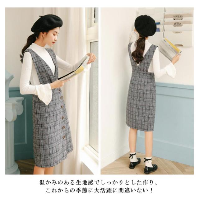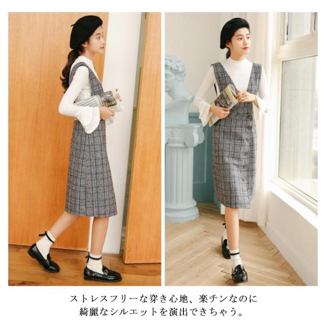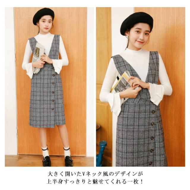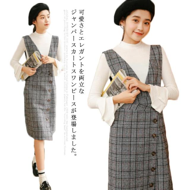 サロペットワンピース ジャンパースカート サスペンダースカート ジャンスカ ジャンパースカートワンピース Vネック グレンチェック チェック Aライン ワンピース 可愛い 秋冬 格子