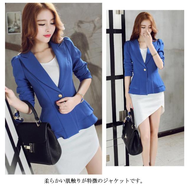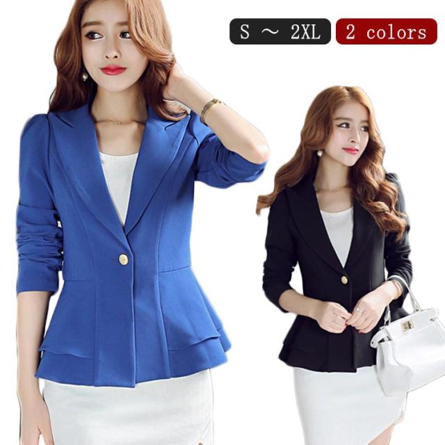 テーラードジャケット レディース ノーカラージャケット フォーマルジャケット スーツジャケット ビジネスジャケット Aライン オフィス ビジネス OL 通勤 通学 入学式 卒業式 ブルー ブラック
