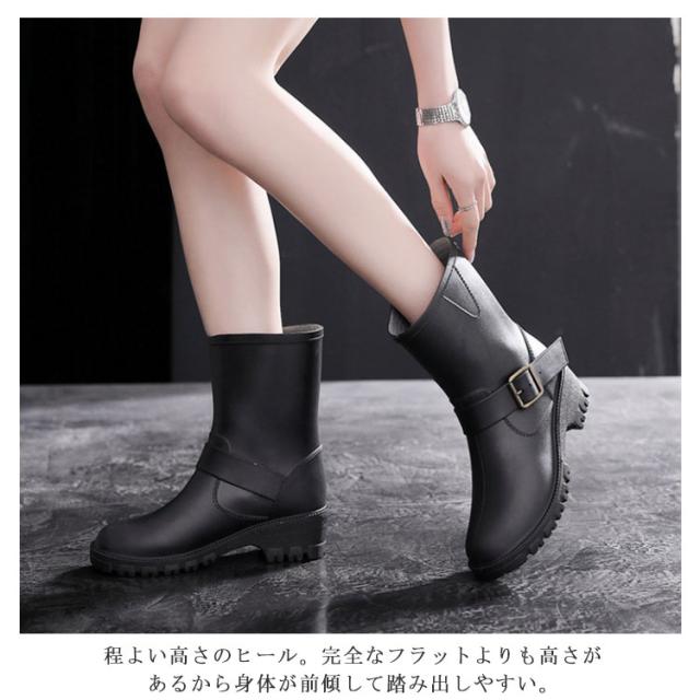 | 雨の日もおしゃれなエンジニアレインブーツ 柔らかい素材で歩きやすい 長すぎず短すぎずちょうどいい 程よい高さのヒール。完全なフラットよりも高さがあるから身体が前傾して踏み出しやすい。 しっかりとした凸凹が入っているから、グリップ力が高くて、濡れた地面でも滑りにくい。 金具付きのベルトがアクセントの大人デザインです。 | |